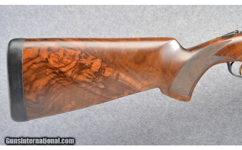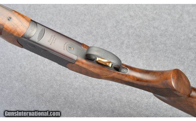 Description: Beretta Orvis Waterfowler in 12 Gauge,.Satin Blue Steel, Highly figured stock. SOLD Caliber Info: 12 Gauge Chambers: 3 Inch Metal Condition: Scattered light rubs and scratches Wood Condition: Scattered handling marks, few light dings near the toe Bore Condition: Very Bright Barrels: 28 Inch Triggers: SST, Adjustable for LOP Stock: Square Knob Pistol Grip, Checkered High Grade Walnut Stock Dimensions: 14 1/2 " LOP as set, 2 "DAH 1 7/16" DAC, Cast-off for the right handed shooter Fore End: Checkered Butt Pad: Leather Pad Weight: 7 Lbs 7 Ozs Sights: Vent Rib, Bead Removed Chokes: Full and I.C. Screw in Chokes Item Location: Buda, TX |