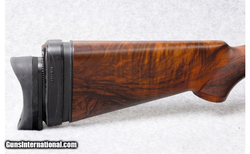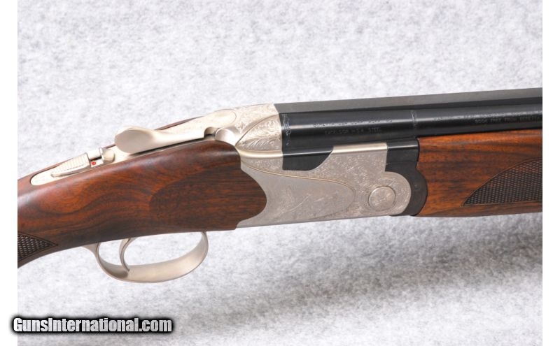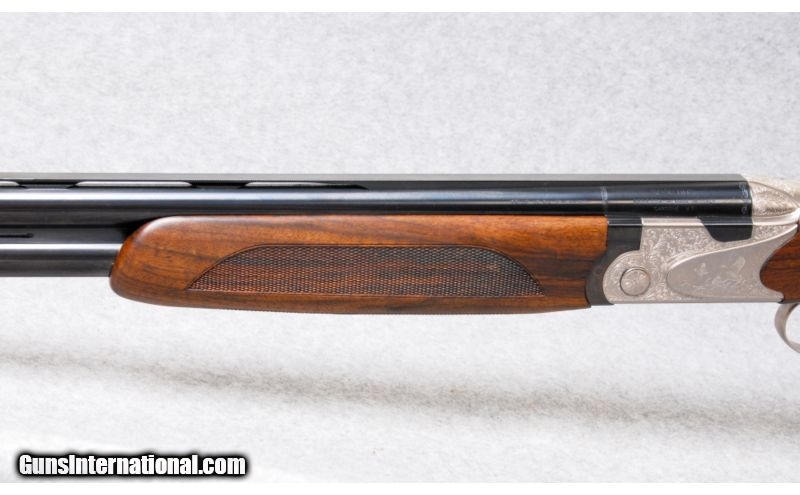 Description: SOLD Caliber Info: 12 gauge. Chambers: 3" chambers. Metal Condition: Silver receiver with engraved pheasant and quail in outdoor scenes. Wood Condition: New. Bore Condition: New. Barrels: 32" with a vent rib. Triggers: Pull trigger. Stock: Hand rubbed oil finish walnut with a checkered pistol grip, and silver pistol grip insert. Stock Dimensions: LOP: 13 7/8" to the back of the Kick-off and 15 1/4" to the end of the Morgan pad. Fore End: Checkered fore end with silver hardware. Butt Pad: Kick-off with an additional Morgan pad. Sights: Fiber optic front sight and metal center bead. Chokes: Screw-ins. Extras: Comes with a hard case and accessories. Item Location: Kansas City, KS |