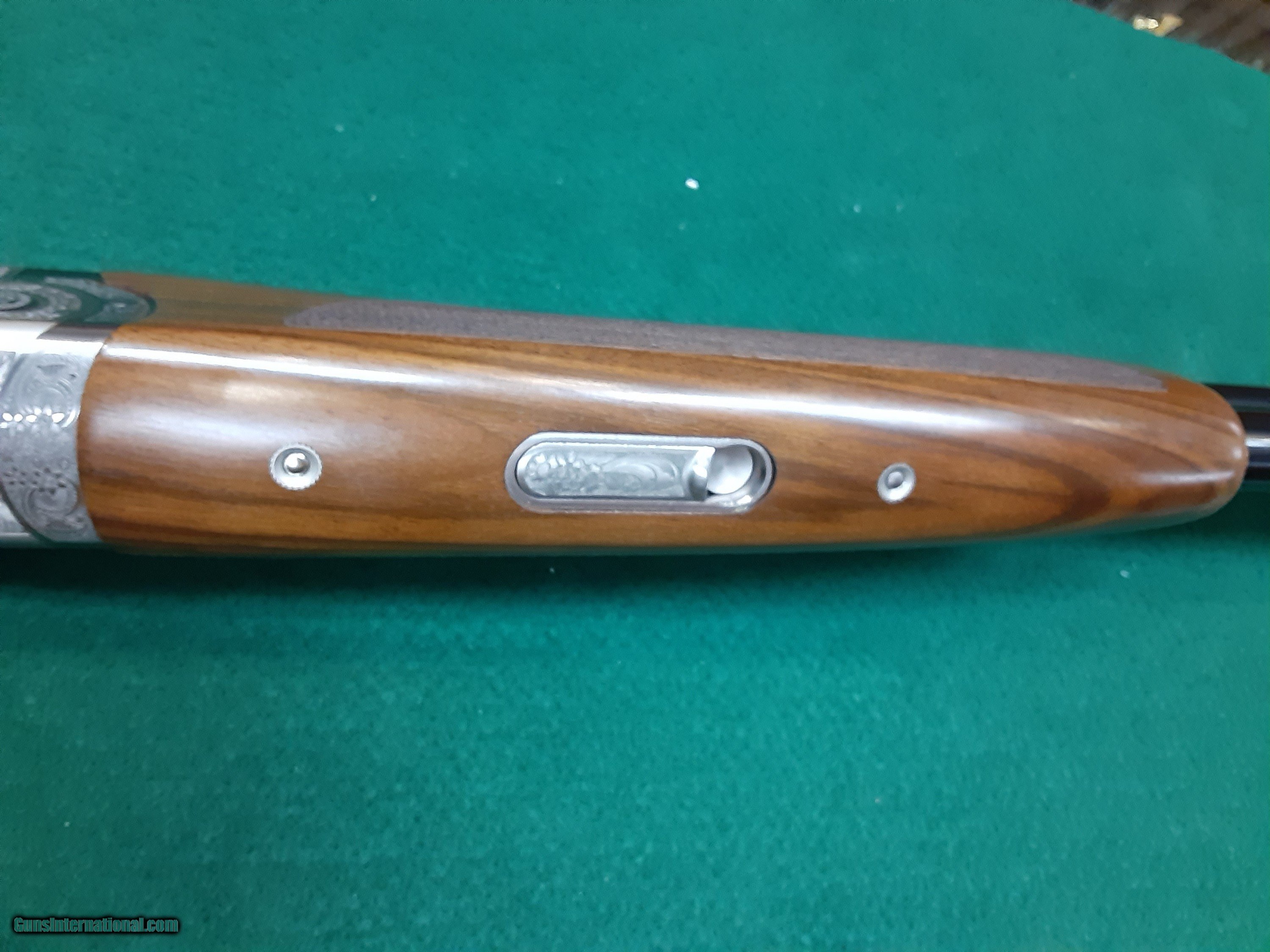 Description: A LEAP IN QUALITY The new Silver Pigeon III represent a further leap in quality in the Silver Pigeon over-and-under range. Dedicated to the increasing flock of hunters who desire for their shotgun to set them apart, they are produced in classic 12, 20, 28 and .410 gauges. The new 28/.410 gauge receiver is a masterpiece of slenderness and elegance, functionality and robustness. Stock, receiver, barrels, fore-end: each component is perfectly proportioned with the other, and balanced in weight in order to guarantee maximum handling and ease of swing. CLOSE TO A MASTERPIECE What’s impressive at first sight, in the new Beretta Silver Pigeon III, is the superior quality of the walnut stock and fore-end; its beauty further exalted by a precious oil finish and the newly designed, ergonomic checkering executed by Laser technology. The Schnabel fore-end and oval initials shield further personalize these handsome shotguns. If the standard shock absorbing Gel•Tek recoil pad makes a day of intense hunting even more enjoyable, then the Truglo® luminous front sight (in alternative to the classic nickel silver one) assures maximum performance even in conditions of scarce visibility. The cold hammer forged and deeply blued barrels come with the appreciated screw-in Mobilchoke® tubes, or classic fixed chokes for 12 and 20 gauges only. RICHLY ENGRAVED On the Silver Pigeon III, the rich engraving perfectly marries the ornate floral motifs of the receiver to the lovely hunting scenes of the side panels depicting ducks and pheasants on the 12 gauge and quails and woodcocks on the smaller gauges. The “gold” Beretta logo stands out on the trigger plate making the firearm identifiable in the gun rack at a glance. The special Beretta nickel base treatment protects the receiver from weather conditions. SOLD Shotgun Gauge: 12 Gauge Manufacturer: Beretta Model: The new Silver Pigeon III Serial Number: F06773X Barrel Length: 28 Chambers: 3 Ejectors: Automatic Condition: New Wood Condition: EXCELLENT Action: O/U Item Location: New York (NY) |