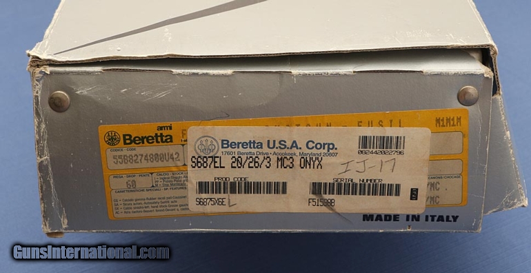 Description: Very RARE Gun! Only one I've ever heard of in 20ga! 1989 - Beretta 687EL Onyx - 20ga, 3", 26-1/2", Mobilchoke, LOP 14-3/4", Drop 1-3/8" to 2-1/4", Weight 6 lbs. 2 oz. PLEASE SEE MY OTHER LISTINGS - I will consider trades on any item, and I am not averse to paying if your trade is more valuable than my listed item. Three day inspection always honored. All Federal and State laws apply. No credit cards. Any Tennessee buyer will have to arrange for transfer through another dealer who will have to collect sales tax on the transaction. PLEASE NOTE THE FOLLOWING: No credit cards. I do not have a retail business location. Therefore, any Tennessee buyer will have to arrange for transfer through another dealer, and will have to pay SALES TAX on the transaction. SOLD |