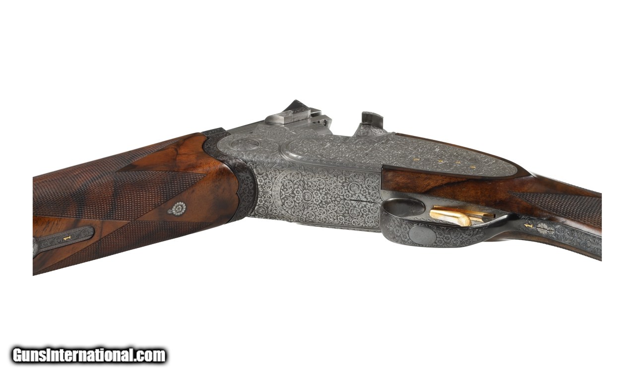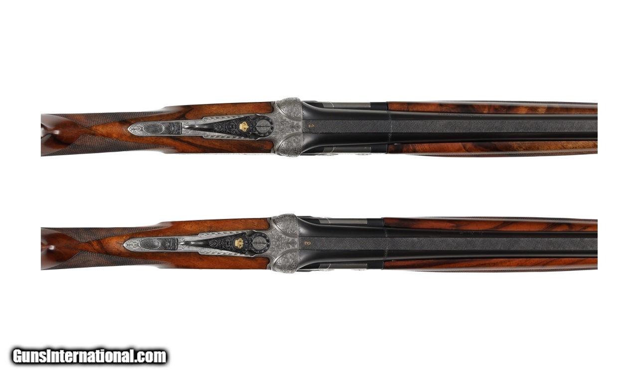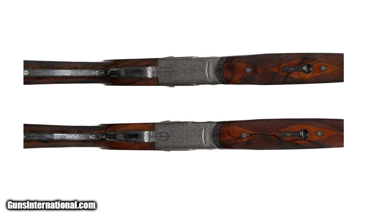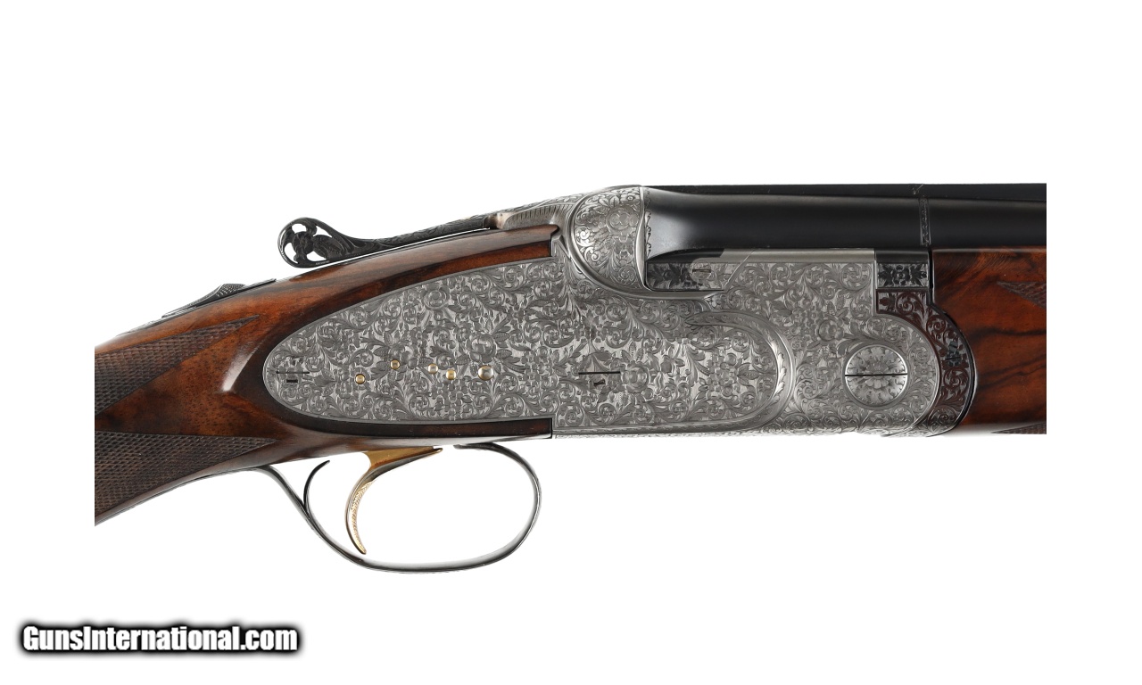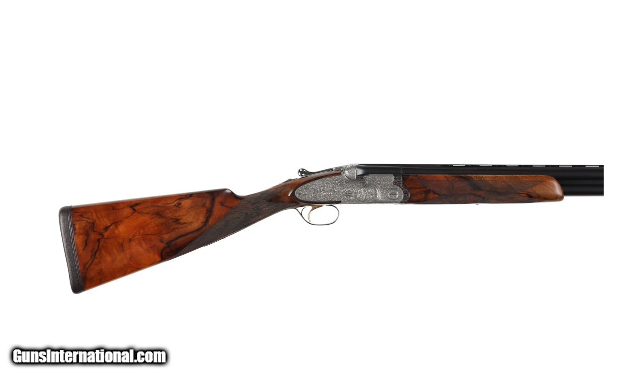 Description: A solid pair of guns with some light handling. One bottom tang is proud. Leather case. Manufactured in: Italy Hand: Right Hand Action Finish: Coin Metal Finish: Original Barrel Length: 28 Inches Barrel Condition: Very Good Stock Finish: Original Stock Condition: Very Good Type of Butt: Leather Covered Pad Pad Thickness: .75 Grip: Straight Grip Forend: Checkered Cast Amount: 1/4" Extra Barrels: No. SOLD Manufacturer: Beretta Model: SO6 EELL Chambers: 2 3/4 Ejectors: Yes Condition: Preowned Metal Condition: Very Good Action: Sidelock Triggers: Single Gauge Info: 12 Gauge Stock Comb: 1 1/2 Stock Heel: 2 5/8 Stock Cast: Off Fore End: Checkered Butt Pad: .75 LOP: 14 1/2 Rib: Ventilated Finish: Original Chokes: IM/XF Extras: No. Case: Leather |