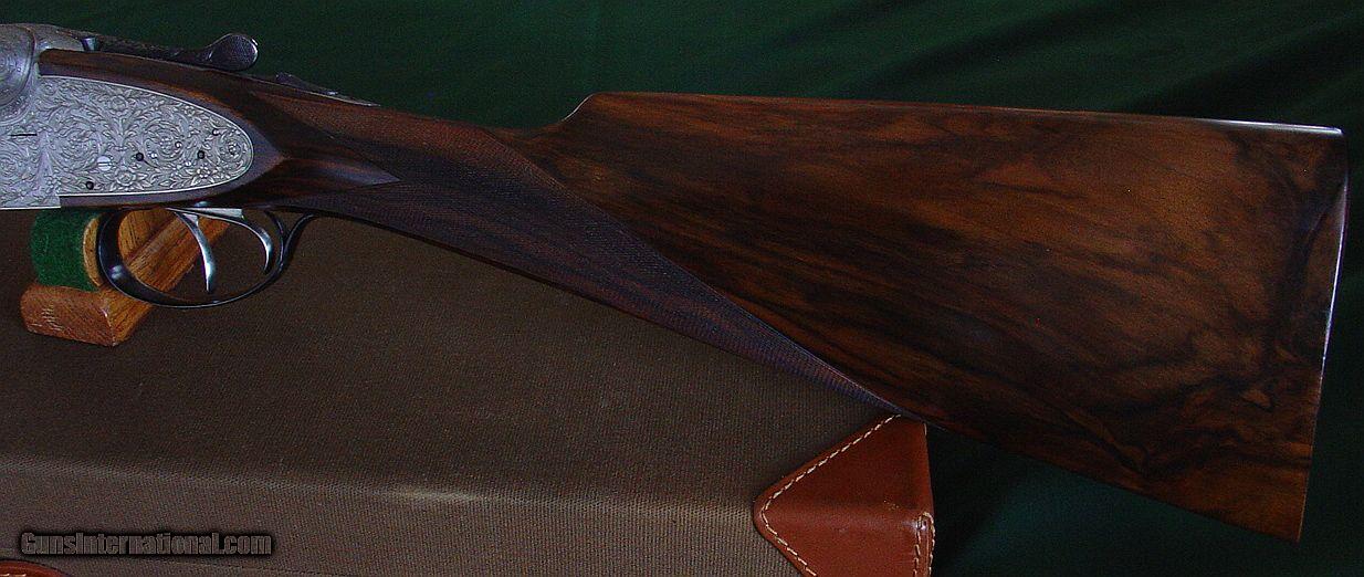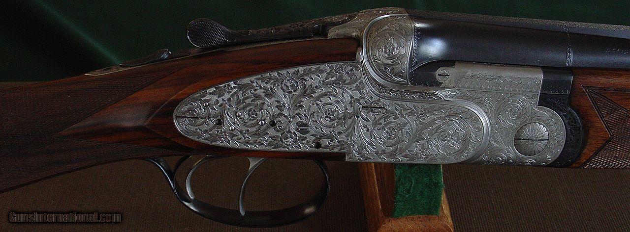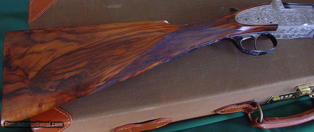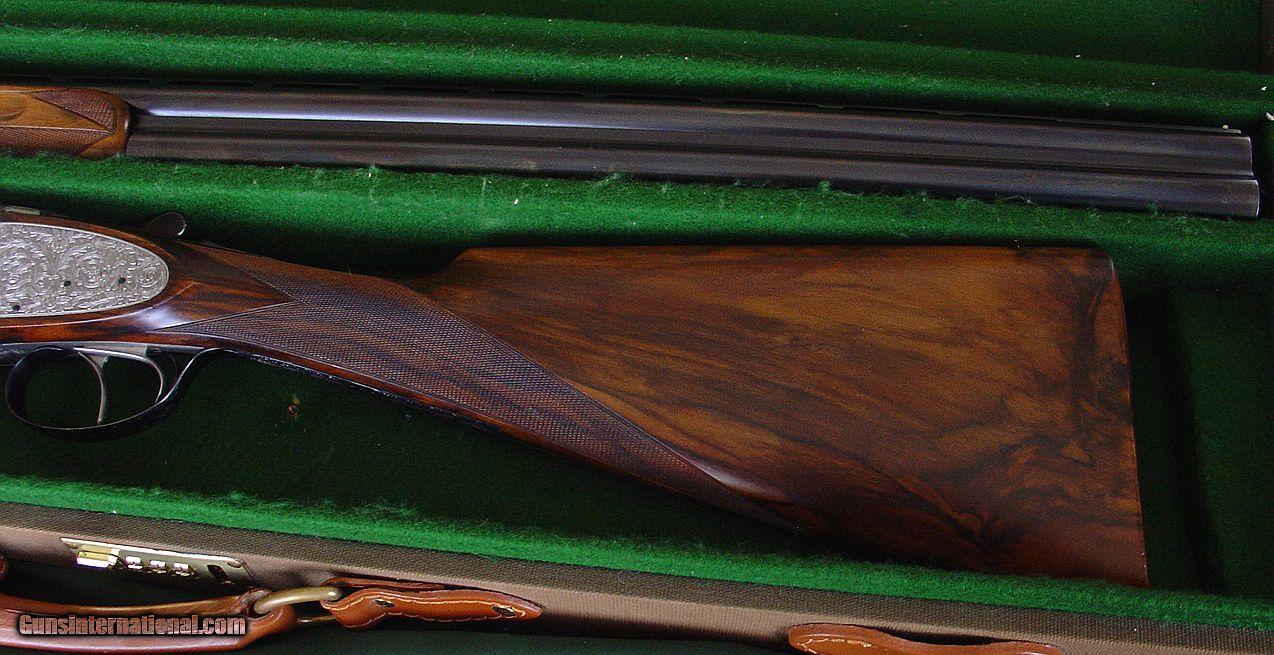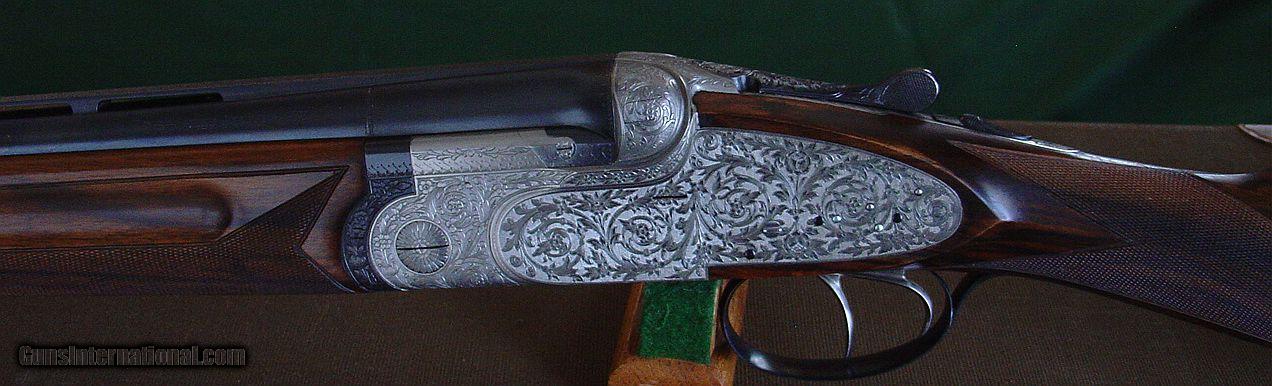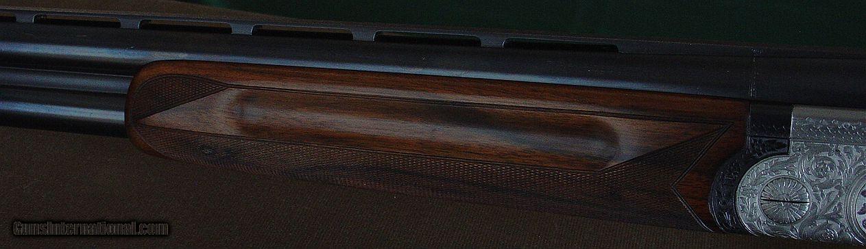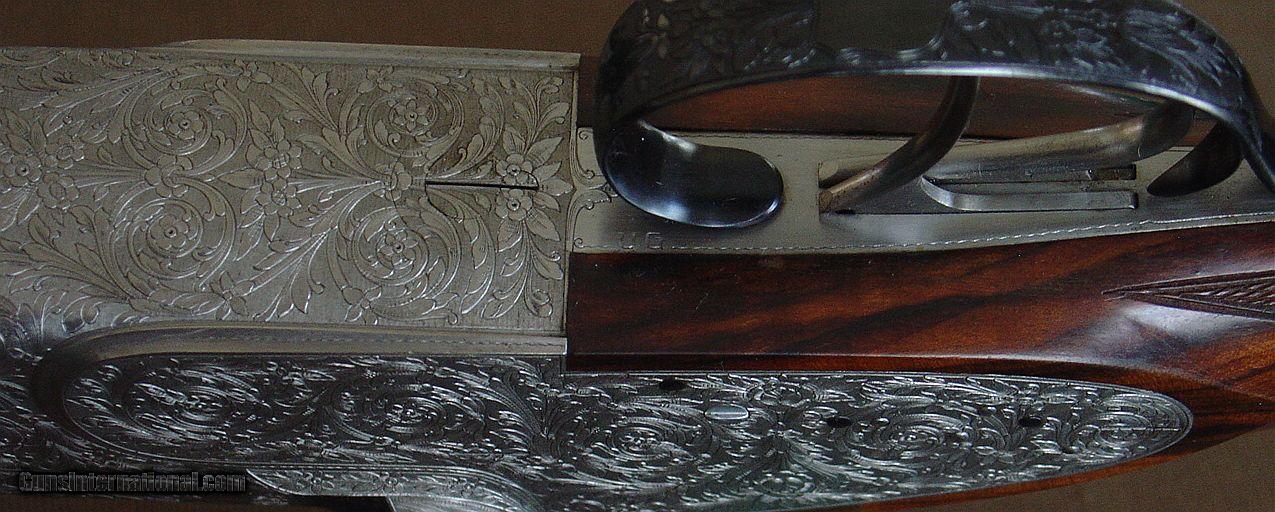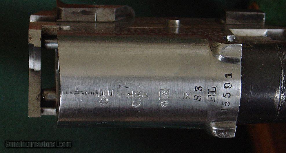 Description: Beretta S3EL 12 Bore. Superb condition. Gun does not appear to have been used. These sidelock Berettas exhibit very high quality workmanship and incredible value. Gun comes in original case whose lock has an unknown combination. Lots of value here for an astute buyer.MakerBeretta Gauge/Caliber12 gauge Barrels28 1/2" with VR - 2 3/4: Chambers ChokesIM & Full. .025 U & .042 O EngravingItalian Scroll, Vine, & Floral. Signed with the initials U.G. ActionSidelock Ejector StockWell figured French Walnut. ButtCheckered L.O.P.14 1/2 Weight7 lbs. 2.8 oz. Stock Dimensions1 3/8 x 2 x 14 1/2 with Neutral cast. SOLD Curio/Relic: Yes |