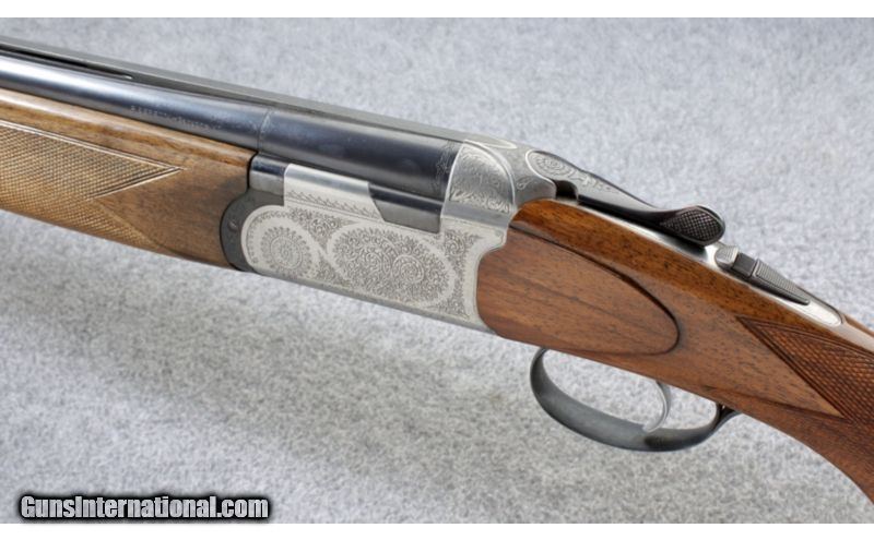 Description: This Beretta S57E 12 Gauge shows very well. The S57E was marketed in the United States as Beretta BL5. The action is tight, the barrels are on face and the top lever just right of center. It features: a single selective trigger, automatic ejectors, tasteful scroll engraving, straight grained gloss finished checkered walnut stocks, sling swivels and a manual tang safety. This shotgun is an excellent value. SOLD Manufacturer: 1974 Caliber Info: 12 Gauge Chambers: 3 inch Metal Condition: Good with a few fine scratches on the barrels and some scattered fine pitting on the action Wood Condition: Very good with some small dents and light scratches Bore Condition: Very good Barrels: 28 inch barrels Triggers: Single selective trigger Stock: Checkered walnut pistol grip stock Stock Dimensions: 14 1/8 in. LOP, 1 5/16 in. DAC, 2 5/16 in. DAH Fore End: Checkered walnut fore end Butt Pad: Beretta black plate Weight: 6 lbs. 13 oz. Sights: Vent rib with single bead Chokes: Modified and full fixed chokes Item Location: Lehi, UT |