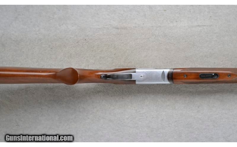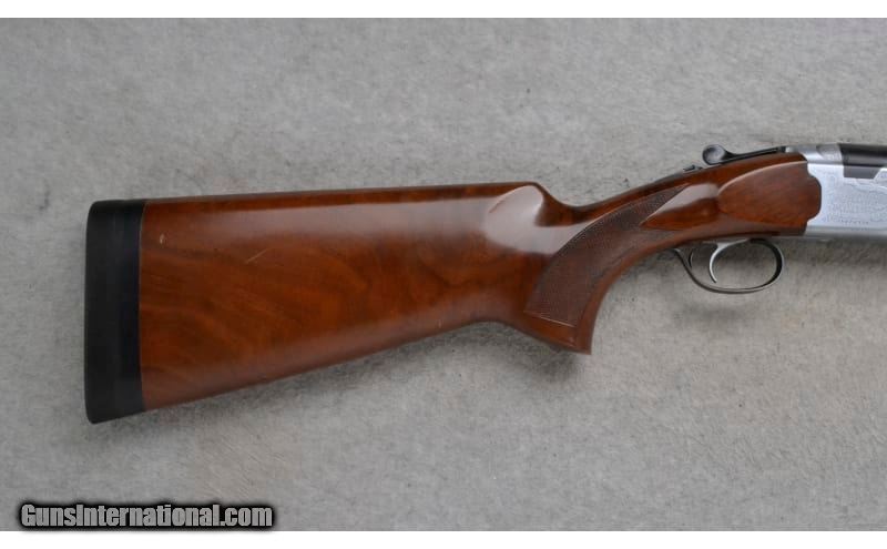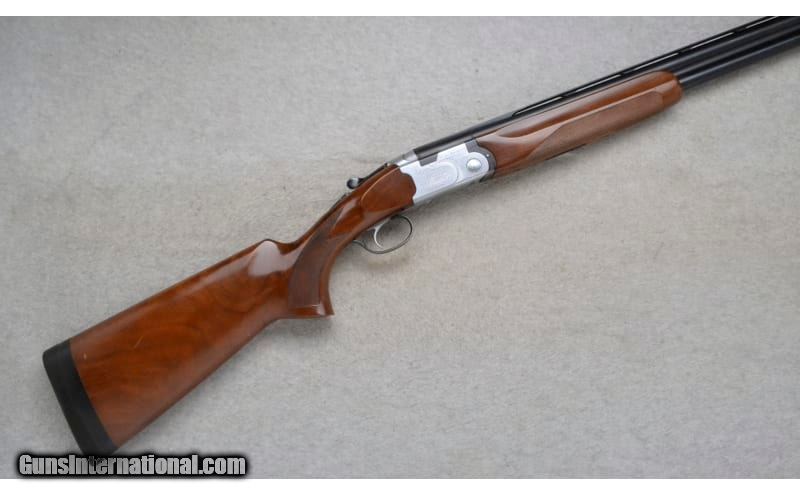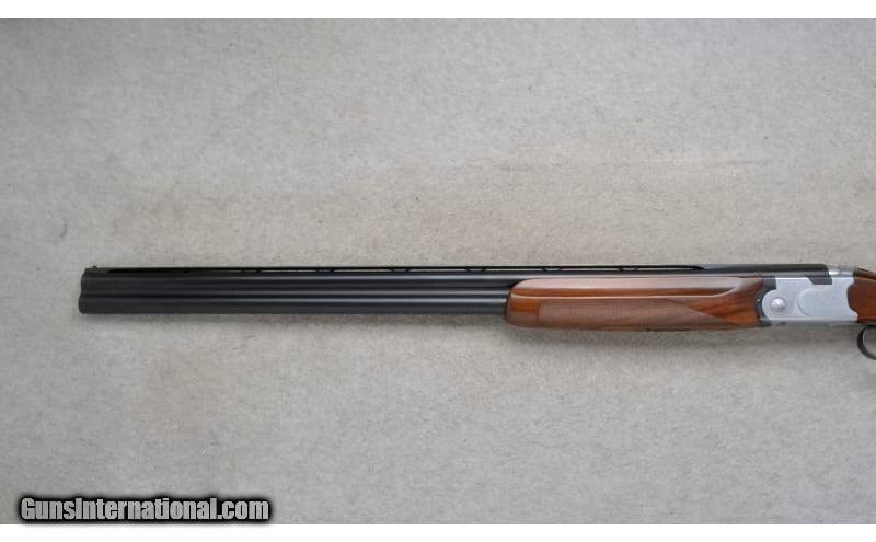 Description: This Beretta Model S686 Special is an over and under shotgun in 12 Ga. It has 29.5 inch Sporting barrels with ejectors and a top barrel ventilated rib. A white bead front sight and a metal middle bead sight. It has a SST. With 3 inch chambers it comes with extra choke tubes. The butt stock is a checkered grip walnut pistol grip. The forearm is a checkered grip walnut with finger grooves. The stainless steel receiver is very nicely engraved. 12 Gauge SOLD Chambers: 2 3/4 inch and 3 inch. Metal Condition: Excellent. Wood Condition: Very Good. Has light handling/use marks. Bore Condition: "Clean, bright and shiny. Barrels: 29.5 inch Sporting barrels with ejectors and a top barrel ventilated rib. Triggers: SST Stock Dimensions: LOP 15 1/4 inches. Fore End: Checkered grip walnut with finger grooves. Butt Pad: Decelerator black rubber recoil pad. Weight: 8 lb. 4 oz. Sights: White bead front. Metal middle bead. Chokes: Comes with hoke tubes. Item Location: Richfield, WI |
