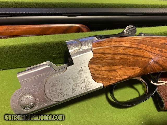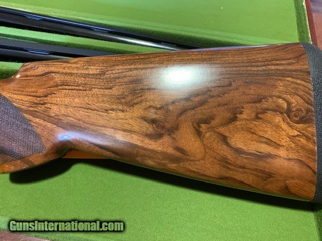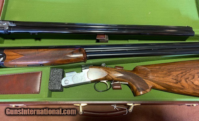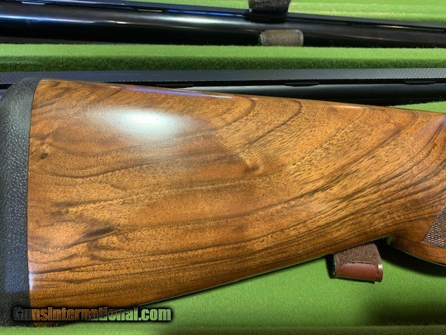 Description: Beretta S687 12g 20g Two Barrel Set Excellent SN- F24907B Comb 1 1/2" Heel 2 1/4" LOP 14 1/2" Cast 1/8" off Ejectors Manual safety 20g bbls 30" . Fixed Mod & Full 2/34" chambers Wide rib 12g bbls 28" Fixed IC & Mod 2/34" chambers Single selective trigger This is a pretty interesting shotgun. Originally a 12g S687 w/28" bbls. Cole Gunsmithing fitted 20g 30" bbls with a wide rib for trap. Work is exceptionally well executed. Comes with very nice leather case in excellent conditiona. Has not seen a great deal of use. Please call or email for additional information and photos. SOLD |