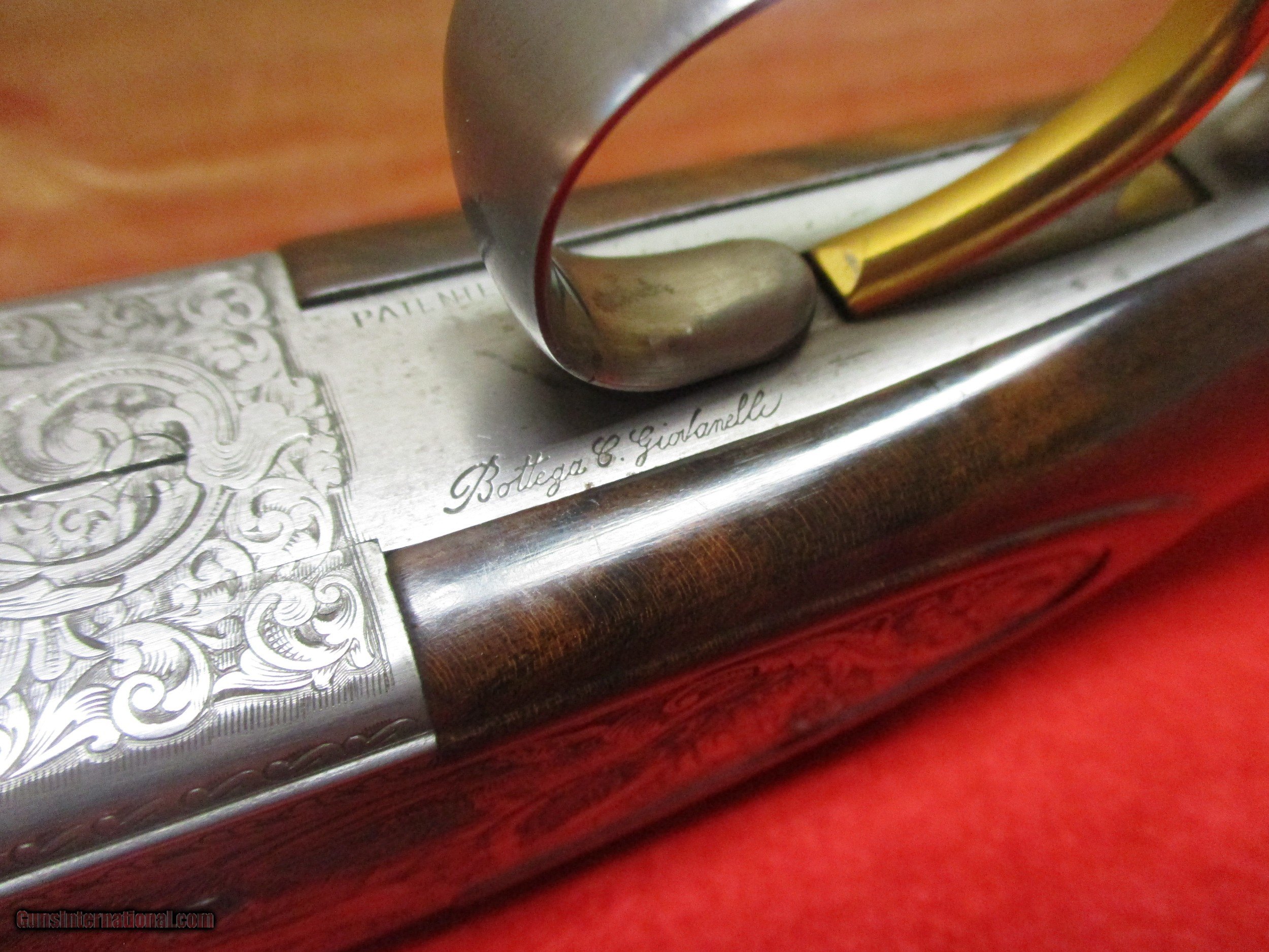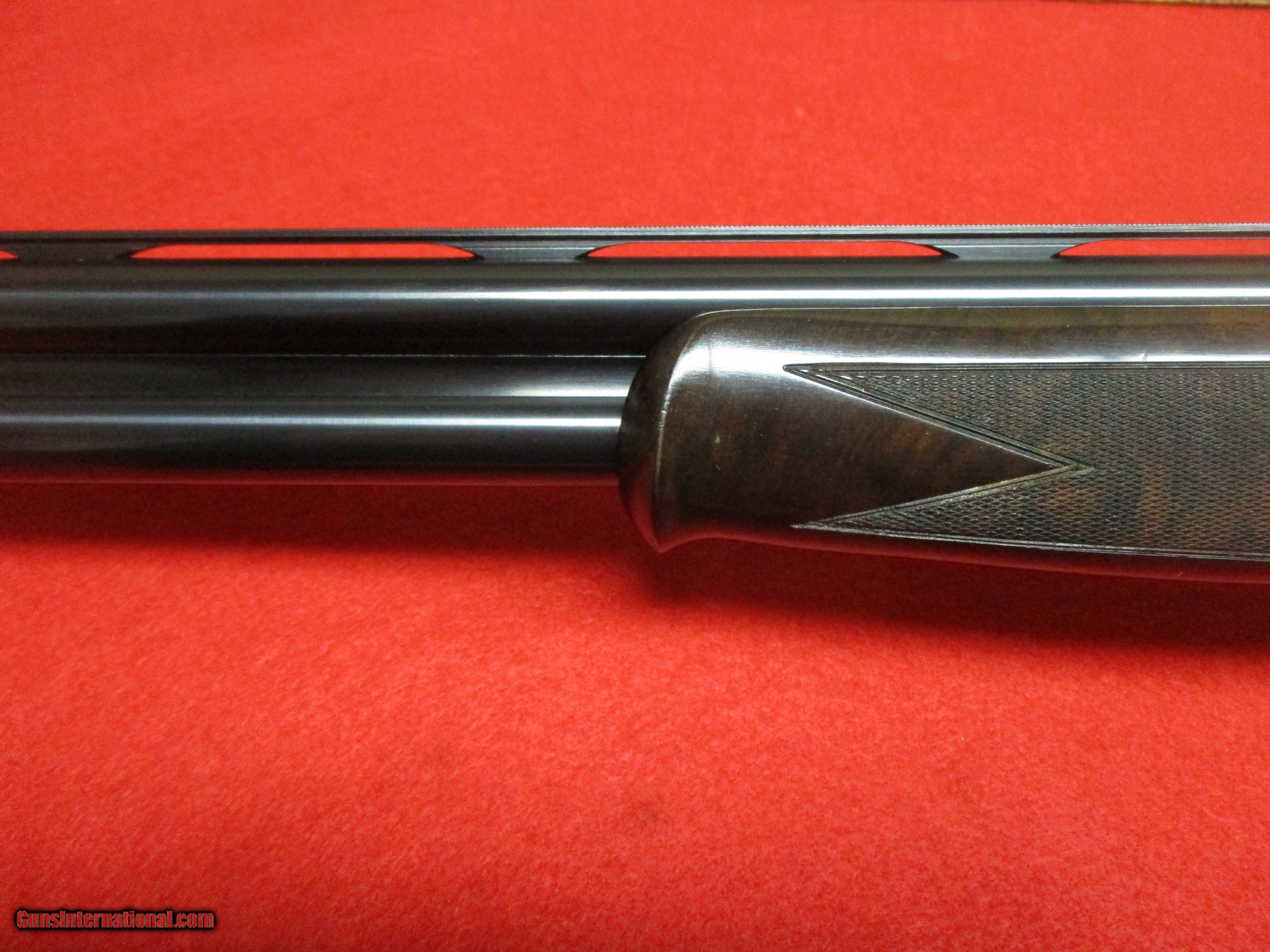 Description: This is a VERY nice Beretta O/U shotgun featuring hand engraving, the work being done by Bottega C. Giovanelli (Bottega = Shop). This consists of game scenes on each side of the receiver which also features full side plates. Barrels are 28 inches long with a full-length vent rib. The metal is in excellent condition. The wood is very beautiful and in fine shape. The extractors work perfectly. The Diamond Pigeon comes with two Mobile Chokes. The top one is a cylinder while the bottom is an improved cylinder. The barrel selector is integral with the safety. The butt pad is solid rubber for reducing recoil (not that there would be much recoil from a 20-gauge). This S687 would make a nice addition to any Beretta collection. There is no box at this time. SOLD Manufacturer: Beretta Model: S687 EE LL Diamond Pigeon Serial Number: 1609S Bore: Smoothbore Chambers: 3.0 inches (76.2mm) Ejectors: Yes Condition: Used - Excellent Barrels: 28.0 inches (710mm) Action: O/U, boxlock Triggers: Single, gold Gauge Info: 20-gauge Stock: High Gloss Checkered Walnut Stock Comb: 1.75 inches (44.45mm) Stock Heel: 2.5 inches (64mm) Fore End: High Gloss Checkered Walnut Butt Pad: Solid Rubber LOP: 14.0 inches (356mm) Rib: Vent, 0.225 inches (5.72mm) Finish: Blued (barrels); Silver (receiver) Weight: 6.75 lbs. Sights: Front silver bead Chokes: Mobile Chokes, Cylinder and Improved Cylinder Engraving: Hand Engraved, Hunting and Floral patterns, Bottega C. Giovanelli |