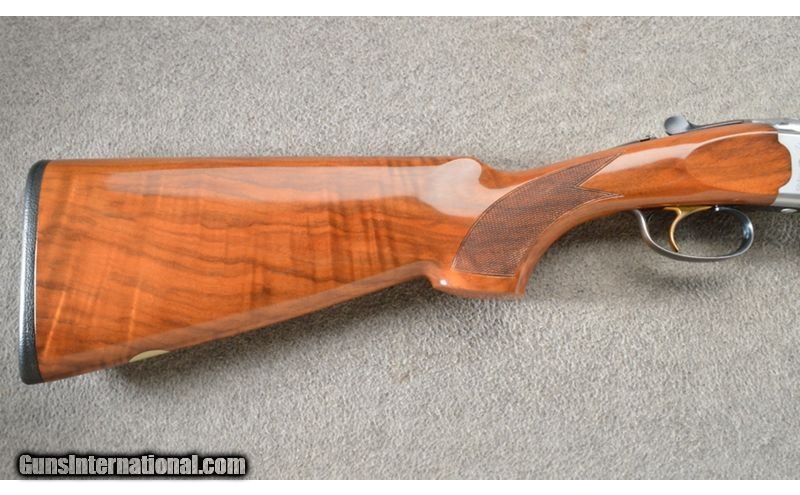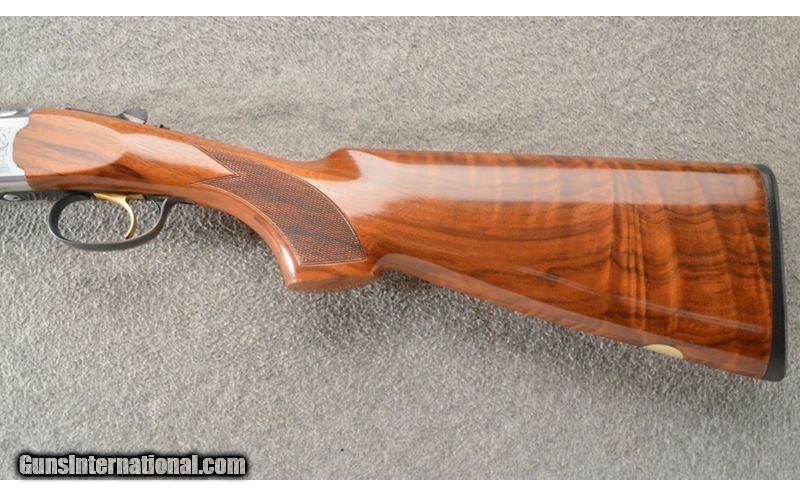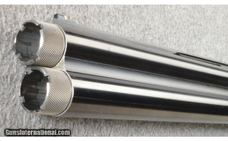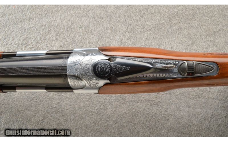 Description: A 20 gauge S 687 Silver Pigeon' single-trigger over-and-under ejector gun by P. Beretta. Hold-open top lever, fully-selective single-trigger with automatic safety-slide and integral barrel-selector switch, the satin-nickel action-body is engraved depicting two partridges on the right, two geese on the left and two grouse on the underside all in their natural settings and surrounded by foliate-scroll engraving, figured Turkish walnut stock with pistol grip and Beretta recoil-pad. The barrels engraved P. Beretta - Made in Italy with 5 mm matt ventilated top-rib, 28" barrels with extended, I.C. & I.C. chokes. 20 Gauge SOLD Chambers: 3" chamber. Metal Condition: 98%. Wood Condition: Light handling marks. Bore Condition: Bright smooth bore. Barrels: 28" O/U barrels. Triggers: Single. Stock Dimensions: LOP 14.5". Fore End: Checkered. Butt Pad: Rubber. Weight: 6.25 lbs Sights: "White bead front, brass mid-bead. Chokes: Removable. Item Location: Owatonna, MN |