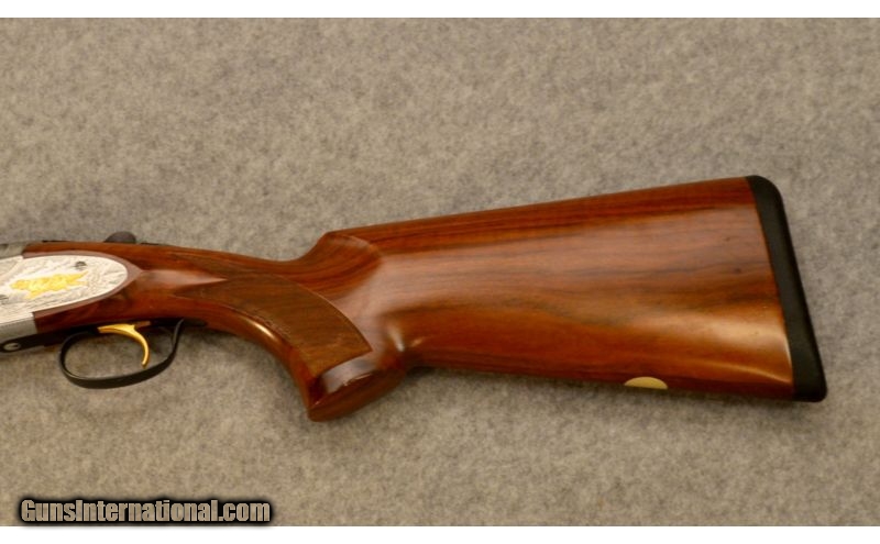 Description: This is a pre-owned Beretta S687EL Gold Pigeon. SOLD Manufacturer: 1996 Caliber Info: 12 Gauge Chambers: 3 inch. Metal Condition: Very good condition with some small scratches on barrel. Wood Condition: Very good condition with some very small scratches on the wood. Bore Condition: Clean and bright Barrels: 29 1/2 inch. Triggers: Single selective ttrigger. Stock: Checkered walnut. Stock Dimensions: 1 1/2 inch DOC ~ 2 1/4 inch DOH ~ 14 1/4 inch LOP ~ Cast Off 1/4 inch Fore End: Checkered walnut Schnabel forend. Butt Pad: Factory Beretta recoil pad. Weight: 8 1/4 lbs. Sights: Green fiber optic. Chokes: Mobil choke system. Extras: Comes with the factory case, 4 choke tubes, and a choke wrench. Item Location: Glendale, AZ |