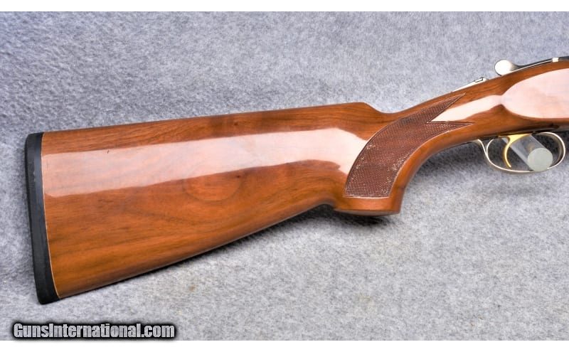 Description: 45 1/4" OAL, 14 3/8" LOP, 1 3/8" DAC, 2 1/4" DAH. 12 Gauge SOLD Chambers: 3 Metal Condition: Excellent Wood Condition: Excellent Bore Condition: Bright and Shiny Barrels: Over/Under Butt Pad: Old English Pachmayr Pad Weight: 7.1 lbs. Chokes: "Removable, I C Both Barrels Item Location: Reno |