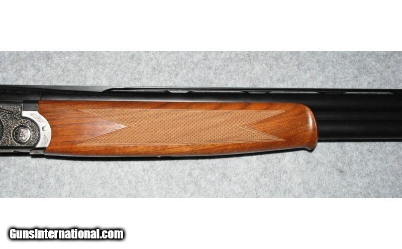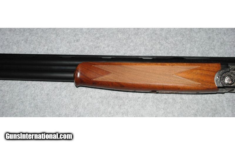 Description: SOLD Caliber Info: 12 Gauge. Chambers: 2 3/4" and 3 Metal Condition: Excellent. Wood Condition: Very small handling marks, small indentation bottom side of stock. Bore Condition: Excellent. Barrels: 29 1/2 Triggers: Single gold smooth trigger. Stock: European walnut Stock Dimensions: LOP 14 1/2 inch Fore End: European walnut Butt Pad: Factory black rubber pad. Weight: 9 Lbs. Sights: White front bead. Chokes: Comes with a set of four chokes Extras: Comes with after market case and a set of four chokes. Item Location: Lacey, WA |