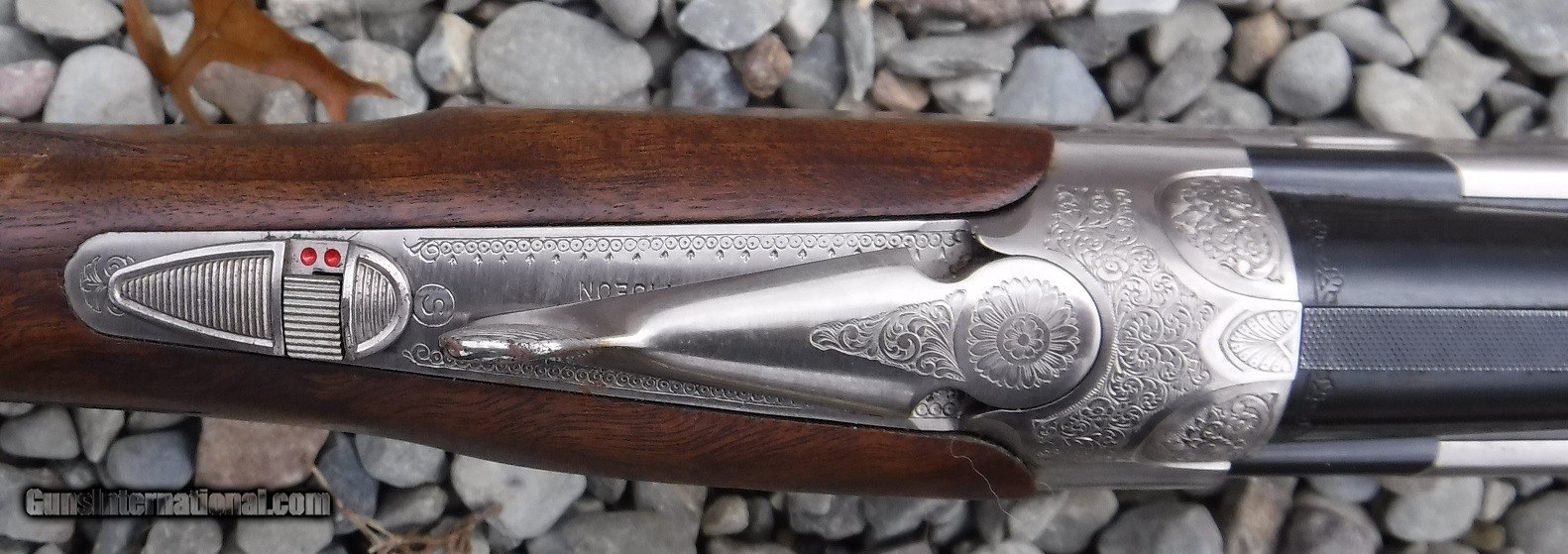 Description: BERETTA SILVER PIGEON II 20 GAUGE - 28" BARRELS WITH NARROW VENTILATED GAME RIB - CHOKE TUBED - COIN FUNISH RECEIVER WITH DEEPLY ETCHED GAME BIRDS ( WOODCOCK ON LEFT & PHEASENT ON RIGHT) & THE REMAINDER SCROLL - TOP LEVER RIGHT OF CENTER - PISTOL GRIP STOCK HAS SOME MARRING - WEIGHT 6 LBS 1 OZ. - WITH BERETTA PLASTIC HARD CASE. SOLD |
