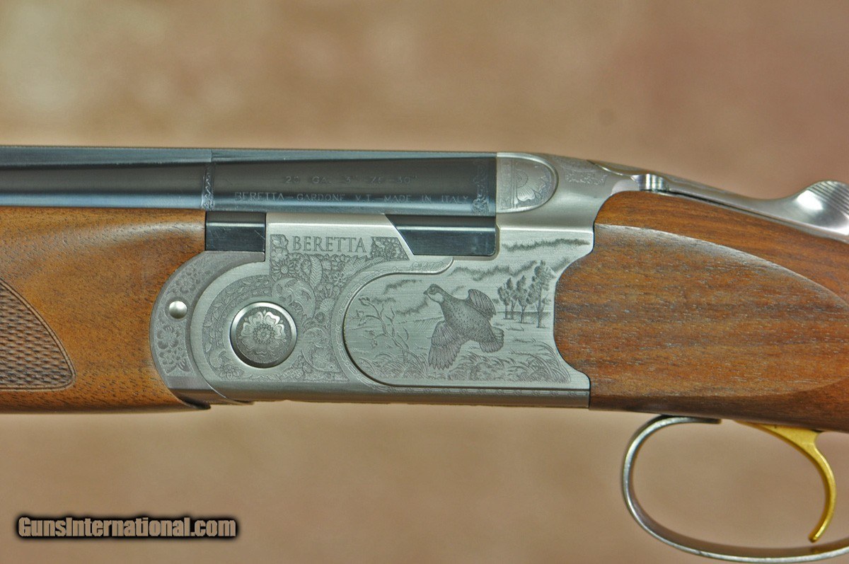 Description: New Beretta Silver Pigeon III 20ga. Features factory flush choke tube 30" barrels with flat game rib. Engraved receiver featuring game scenes with selectable trigger and automatic safety. Highly figured right hand Field stock with Round forend. Comes in factory case. SOLD Shotgun Gauge: 20 Gauge |