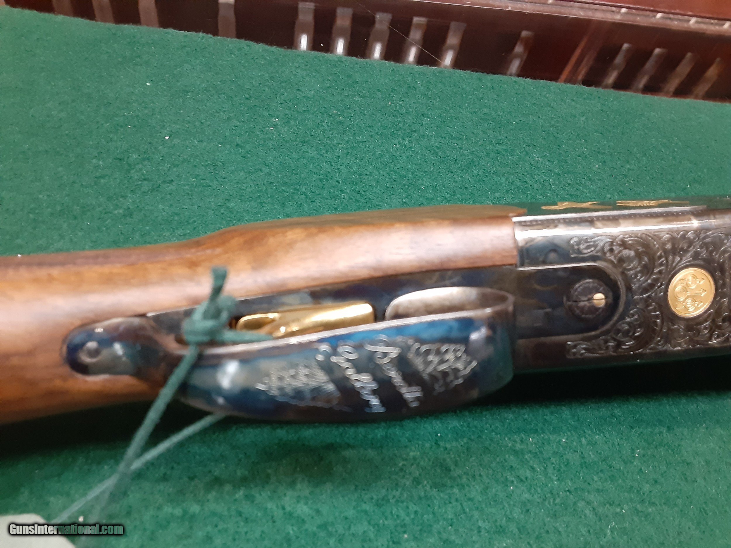 Description: The prestigious Beretta® 687 Silver Pigeon V Over/Under Shotgun is the pinnacle of the 687 line, with a highly-figured select walnut, oil-finished stock, and a color-case finished receiver with gold inlaid game scenes. The low-profile receiver on the 687 Silver Pigeon V gives you the fast swing and enhanced point-ability you need for upland bird hunting, sporting clays, or any shotgun sports that involve speed and instinctive shooting. At the heart of the 687's quick and instinctive shooting are 2 conical locking lugs at mid-action that provide great locking strength while keeping the action's profile considerably lower. As a result of this more compact arrangement is an instinctive pointing, low-profile line of sight, and the recoil is directed rearward to the shooter's shoulder where it is less disruptive to firing a second shot, instead of snapping the stock up at the shooter's cheek. The safety/barrel selector switch of this over and under shotgun is positioned for the thumb of the shooting hand to operate quickly, enabling you to choose which barrel to fire first, depending on either the load or the choke tube. Hard chromed bores and Beretta's Mobilchoke® interchangeable choke tube system minimize pellet deformation and deliver tight, consistently uniform patterns. The Beretta 687 Silver Pigeon V Over/Under Shotgun balances perfectly, shoulders effortlessly, and swings smoothly, making it a serious hunting shotgun to consistently hit fast moving targets. SOLD Shotgun Gauge: 28 Gauge Manufacturer: Beretta Model: Silver Pigeon V Deluxe Serial Number: N99386S Barrel Length: 28 Ejectors: Automatic Condition: New Action: O/U LOP: 14 - 1/2 Weight: 6lbs - 1.6oz Item Location: New York (NY) |