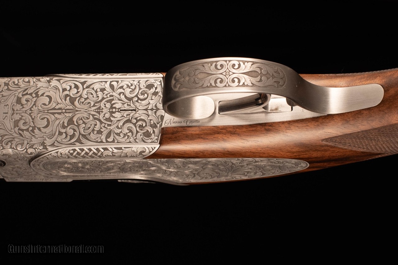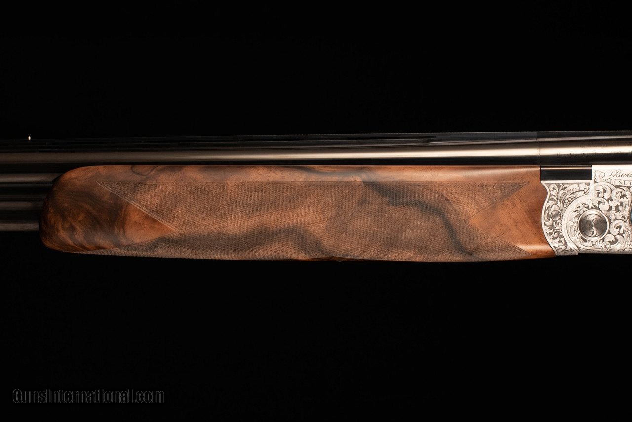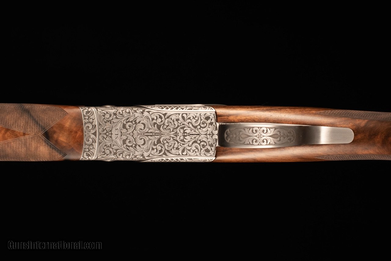 Description: Beretta SL3 in the very limited Sporting configuration, featuring 32" Steelium Pro barrels and Beretta's take on the durable and easily-serviced Boss locking system. Trigger is single-selectable and inertia-operated. Choke system is Optima HP. This gun is effectively the new SL2 Sporting except with a non-dropout trigger, Steelium barrels (18.6 bore, 80mm forcing cones), and the addition of sideplates with very tasteful full-coverage scroll engraving. Wood is of well-figured Turkish walnut with satin oil finish and hand-cut checkering on forearm/grip/buttplate. Narrow rib features a slight distal taper, steel mid bead, and steel front bead. Gun balances precisely on the hinge with a decidedly central weight distribution, making it feel at least a pound lighter than it really is. Comes complete in factory case with chokes and accessories. SOLD Manufacturer: Beretta Caliber Info: 12 Gauge Barrels: 32 Action: Over / Under Gauge Info: 12 Gauge Stock Comb: 1.5 Stock Heel: 2.25 Stock Cast: 1/8" / 3/8" LOP: 14.5 Rib: Flat, ventilated Chokes: Optima HP |