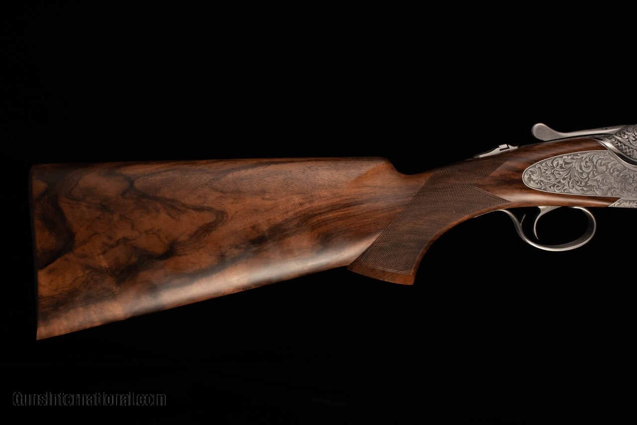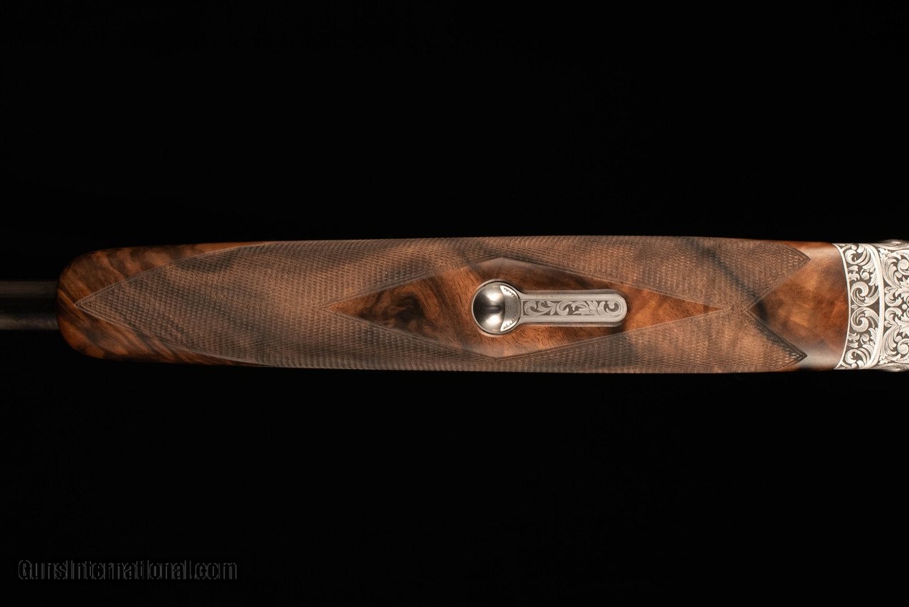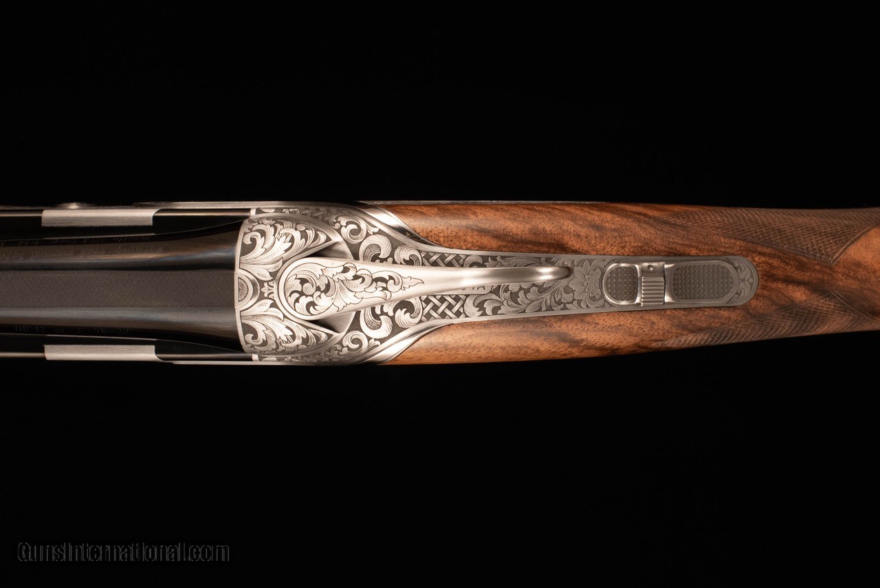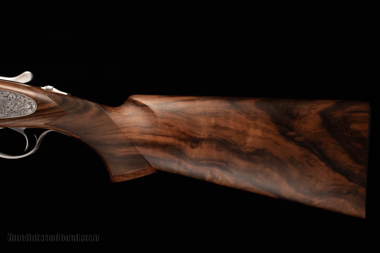 Description: Beretta SL3 in the very limited Sporting configuration, featuring 32" Steelium Pro barrels and Beretta's take on the durable and easily-serviced Boss locking system. Trigger is single-selectable and inertia-operated. Choke system is Optima HP. This gun is effectively the new SL2 Sporting except with a non-dropout trigger, Steelium barrels (18.6 bore, 80mm forcing cones), and the addition of sideplates with very tasteful full-coverage scroll engraving. Wood is of well-figured Turkish walnut with satin oil finish and hand-cut checkering on forearm/grip/buttplate. Narrow rib features a slight distal taper, steel mid bead, and steel front bead. Gun balances precisely on the hinge with a decidedly central weight distribution, making it feel at least a pound lighter than it really is. Comes complete in factory case with chokes and accessories. SOLD Manufacturer: Beretta Caliber Info: 12 Gauge Barrels: 32 Action: Over / Under Gauge Info: 12 Gauge Stock Comb: 1.5 Stock Heel: 2.25 Stock Cast: 1/8" / 3/8" LOP: 14.5 Rib: Flat, ventilated Chokes: Optima HP |