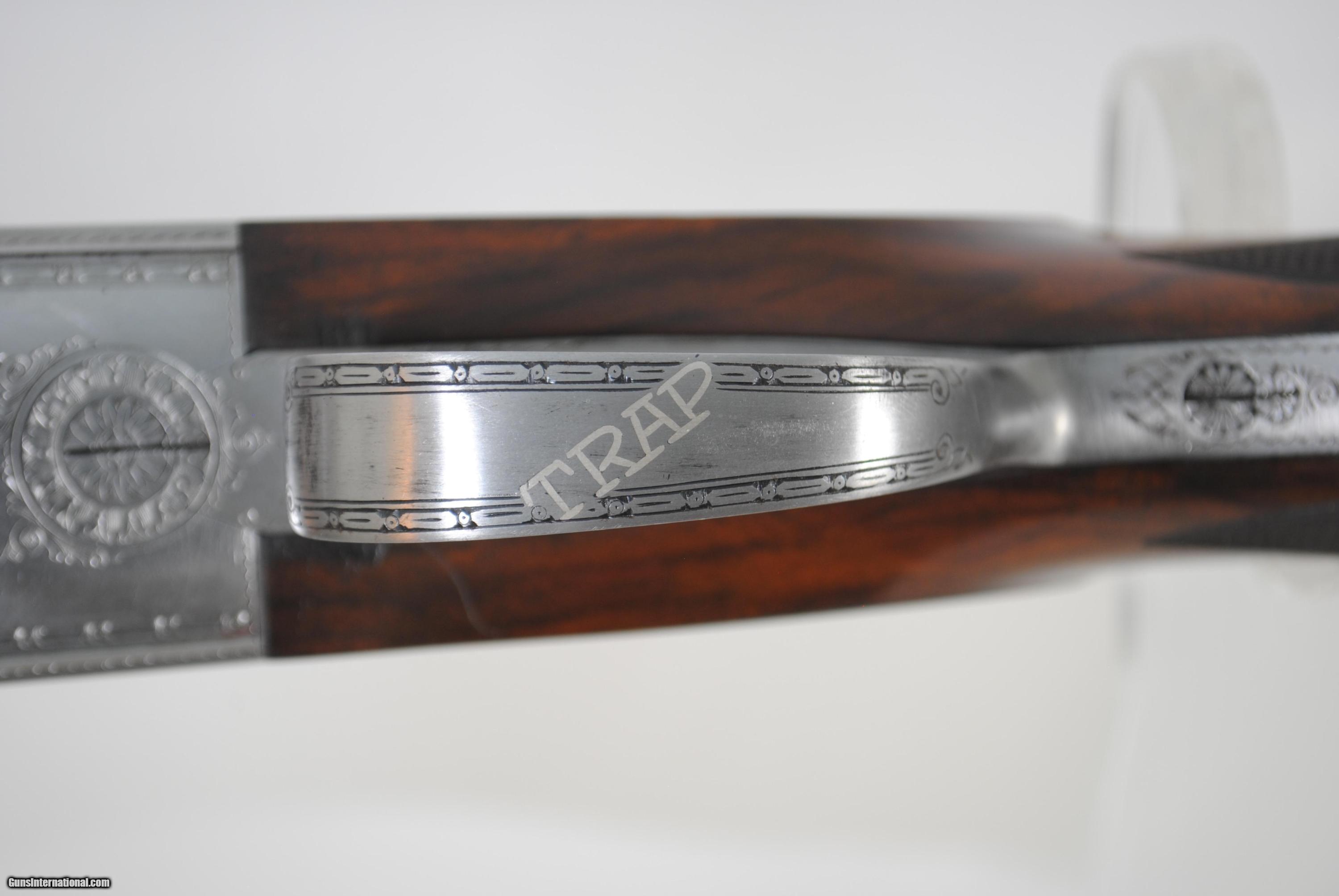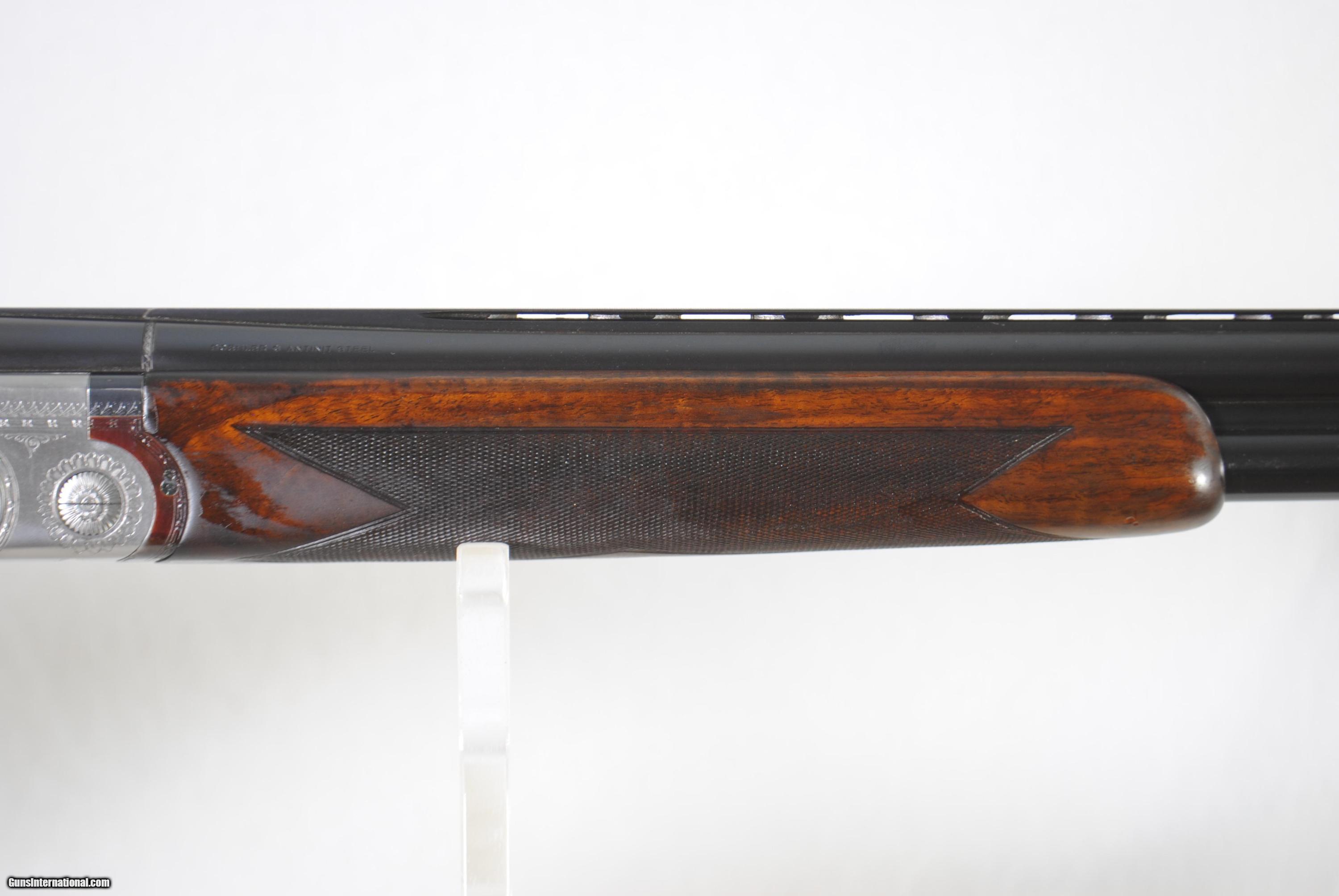 Description: Beretta SO4 Trap with hand detachable locks. The hand detachable SO-4 is fairly rare. The lock plates are removable without any tools, just flip the two small keys in the lockplate. Boehler Antinit Steel Barrels as original at .729 (18.4 Bores). Chokes are Imp Mod and Full. Gun is tight on face. Ejectors well timed. Beretta luxury case included. Weight of the gun is 7 LBS 13 1/4 OZ. Shipping is $40. Stock dimensions follow. LOP - 14 3/8" Drop at Comb - 1 1/4" Drop at Back of Monte Carlo - 1 5/8" Drop at Heel - 2 1/8" For inquiries please call Guy - 407-721-3748 SOLD |