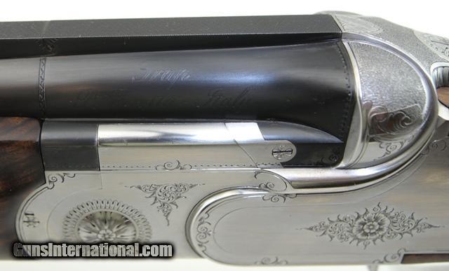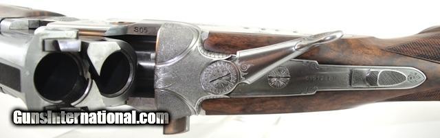 Description: Beretta, SO-5, COMP TRAP, 12 GA 2-3/4" with case, 29 1/2" blued O/U bbls fixed Imp Mod/Full choke, bright shiny bores, lop 14", vented rib, premium wood stock, diamond checkered grip and fore arm, adjustable comb. This shotgun is in pristine condition. Add 3% for Credit Card Shipping $50.00 SOLD |