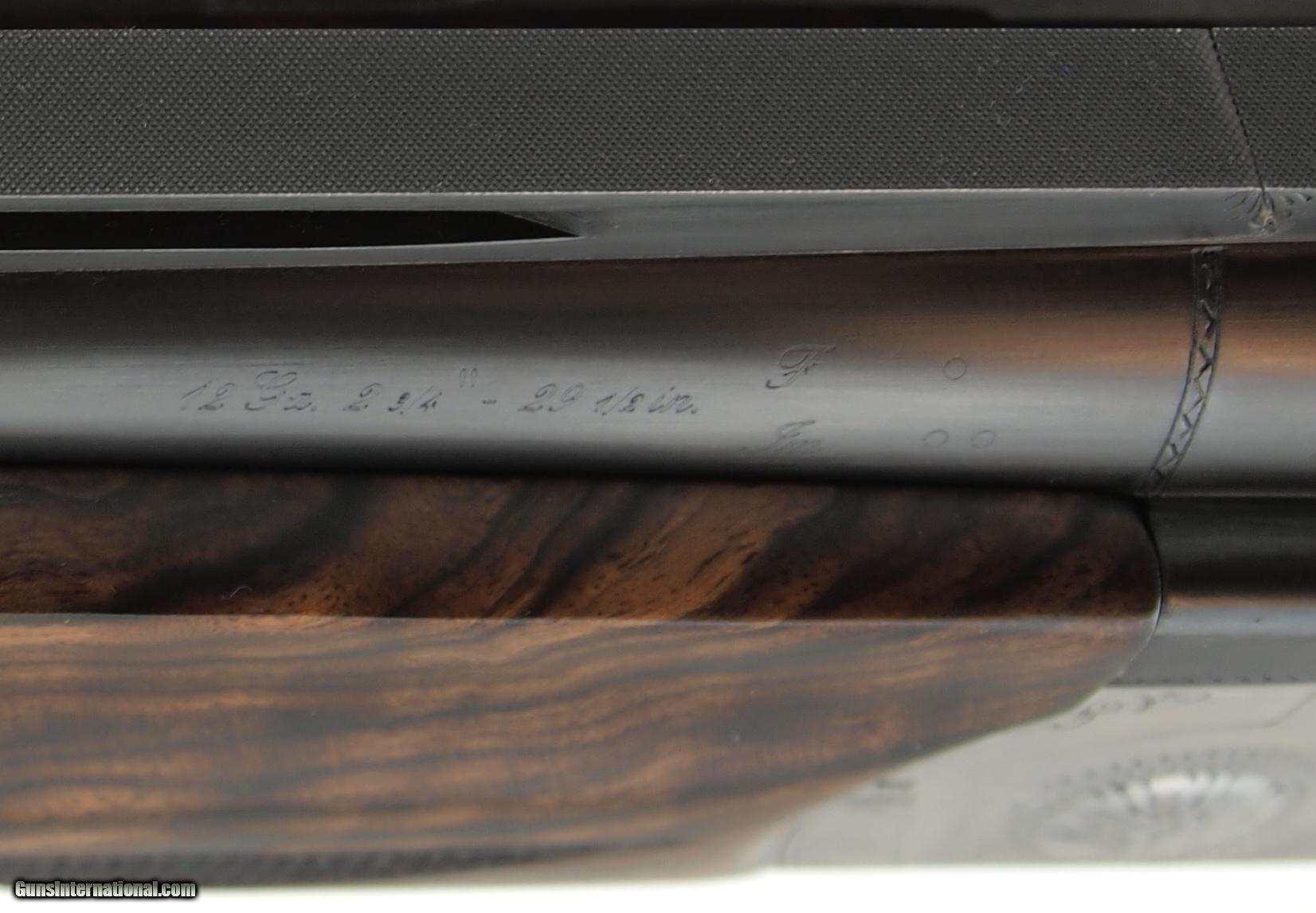 Description: Beretta, SO-5, COMP TRAP, 12 ga 2-3/4" with case, 29 1/2" blued bbls, Imp Full/Full bbl choke, bright shiny bore, lop 14", vented rib, premium wood stock, diamond checkered grip and fore arm, adjustable comb, and new recoil pad. Add 3% for Credit Card Shipping $50.00 SOLD |