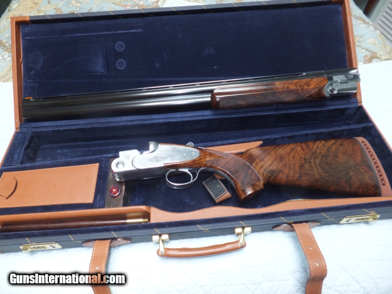 Description: Beretta SO 5 Sporting. 12 ga. 29-1/2 barrels fixed choke modified & light modified. Stock 14-3/4" lop, 1-5/8" drop comb, 2-1/8"drop heel, neutral cast, righthand palm swell. Cased includes SO screw diver set, cleaning rod, brushes and snap caps. Single selective trigger. The stock and forearm as new. A smooth swinging gun with great triggers. SOLD |