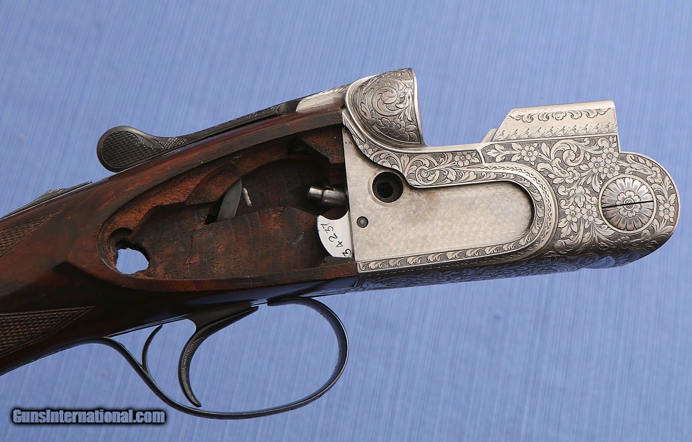 Description: Outstanding Engraving - by G. Turrini Great Example of a Classic! 1968 - Beretta - SO3EL - - 12ga, 2-3/4", 28" M / F - Hand Detachable Locks, Tapered (10mm - 6mm) - Hand Filed Vent Rib, Ejectors, Single Non-Selective Trigger, LOP 14-1/4 to Checkered Butt, Drop 1-5/8 to 2-1/2", Neutral Cast, Weight 7 lbs 4 oz. Excellent Plus Condition! 98+%! Action is Tight. Bores are Perfect. Someone decided this gun should be an EELL vice EL and engraved and extra E and L on the hidden shoulder of the frame. It doesn't detract from the gun at all. Shipping to CONUS included in price. PLEASE SEE MY OTHER LISTINGS - I will consider trades on any item, and I am not averse to paying if your trade is more valuable than my listed item. Three day inspection always honored. All Federal and State laws apply. No credit cards. Any Tennessee buyer will have to arrange for transfer through another dealer who will have to collect sales tax on the transaction. PLEASE NOTE THE FOLLOWING: No credit cards. I do not have a retail business location. Therefore, any Tennessee buyer will have to arrange for transfer through another dealer, and will have to pay SALES TAX on the transaction. SOLD Curio/Relic: Yes |