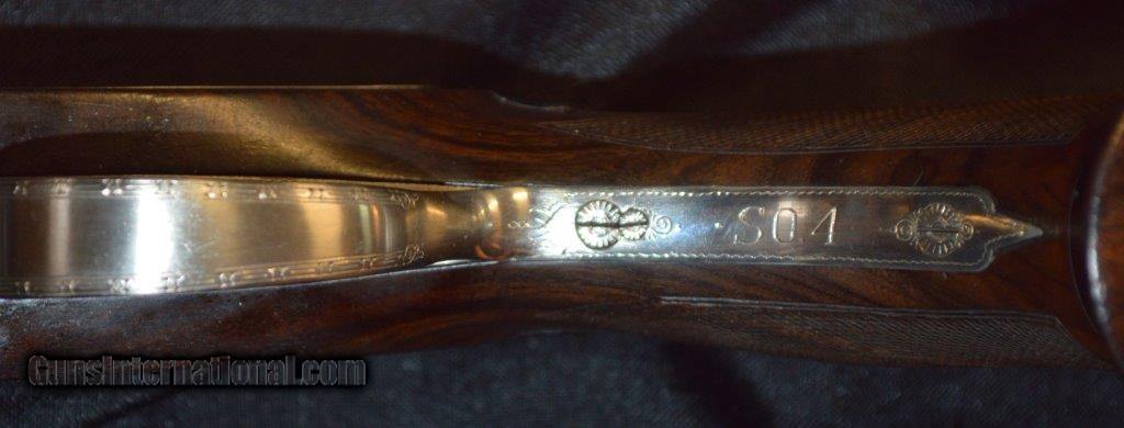 Description: This is a Beretta SO4 12 gauge with 30" barrels and 8 Teague thin wall chokes with the wrench. It was made in 1976 as a tribute to the Montreal and Monaco Olympics of 1972 and it has an emblem of such on the grip cap. It comes in its original factory Beretta hard shell case that is fitted to the gun. The LOP Is 14 1/2" to a leather covered recoil pad. The gun has a fully adjustable comb. SOLD Curio/Relic: Yes |