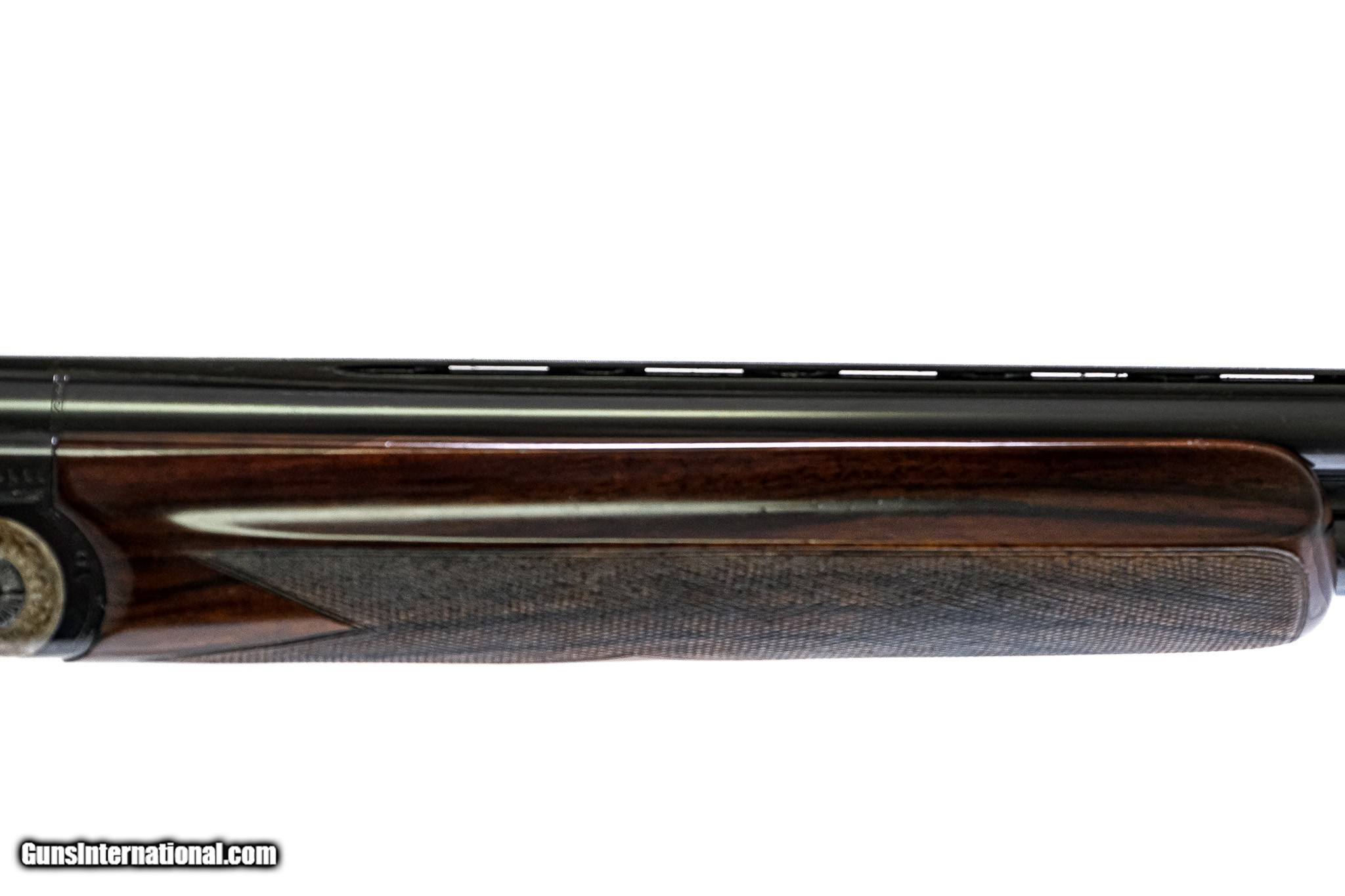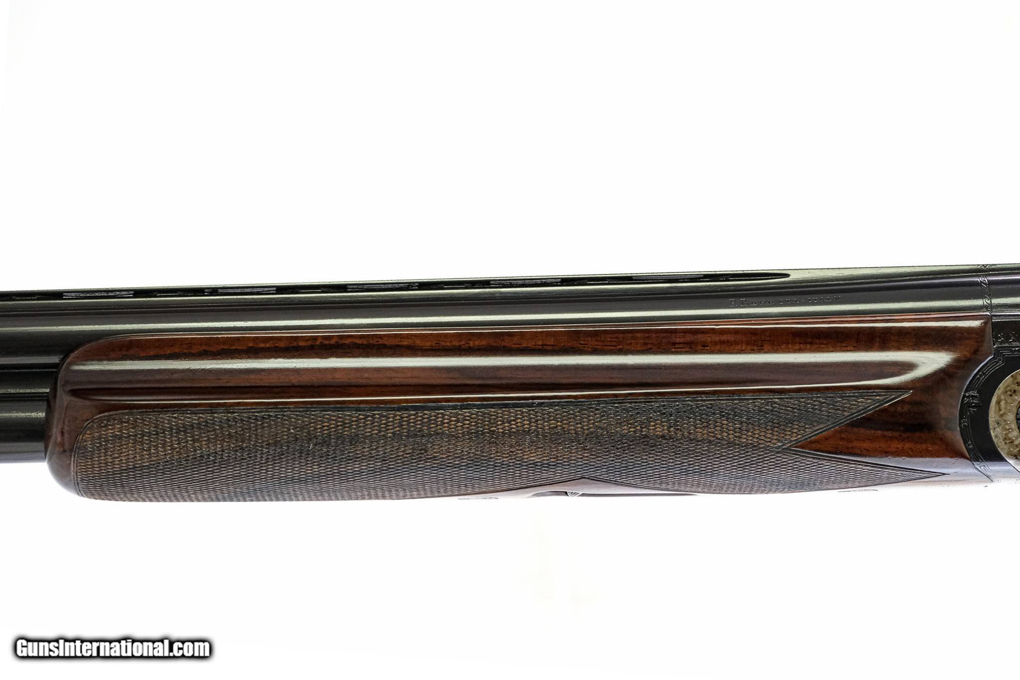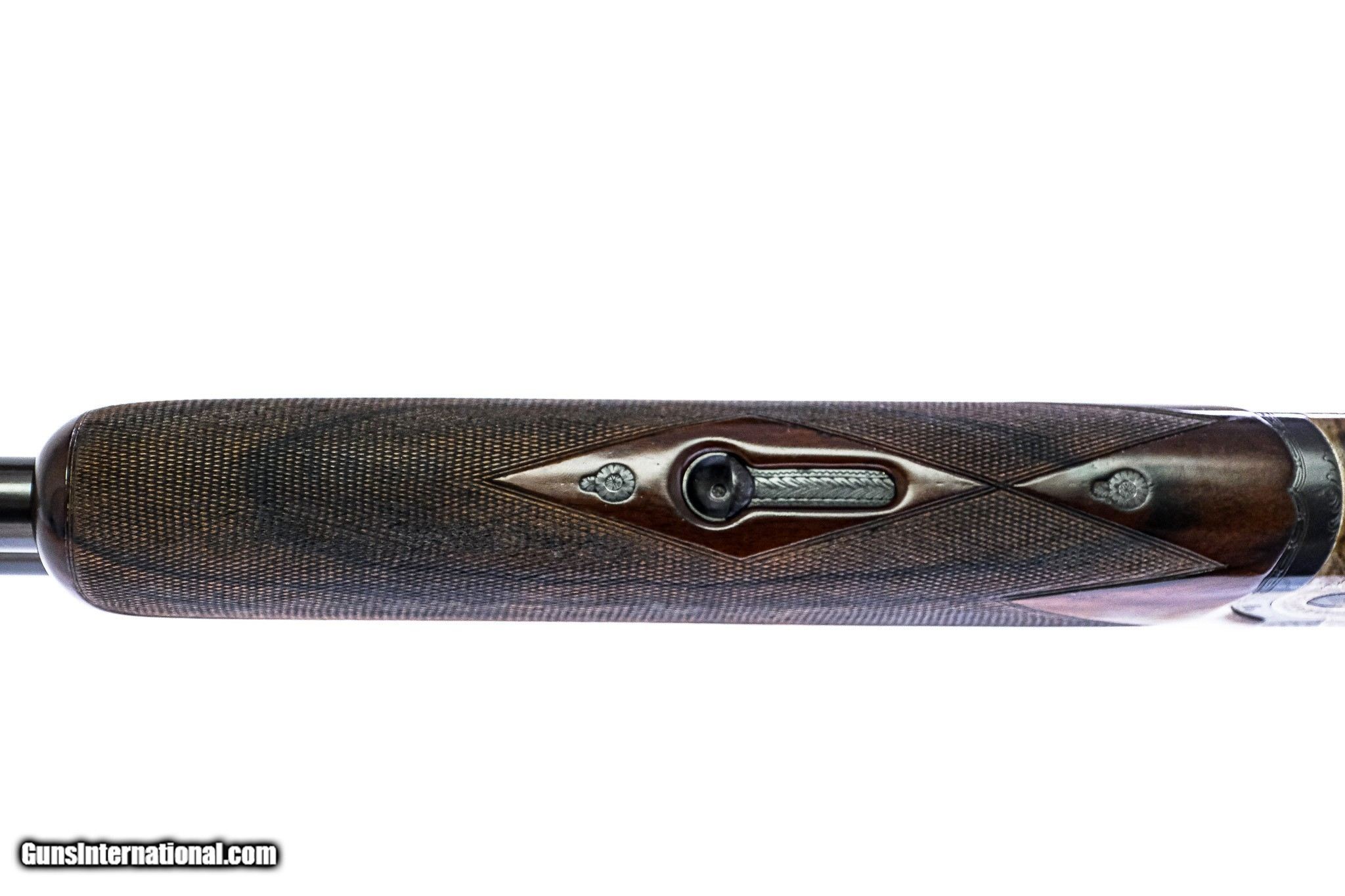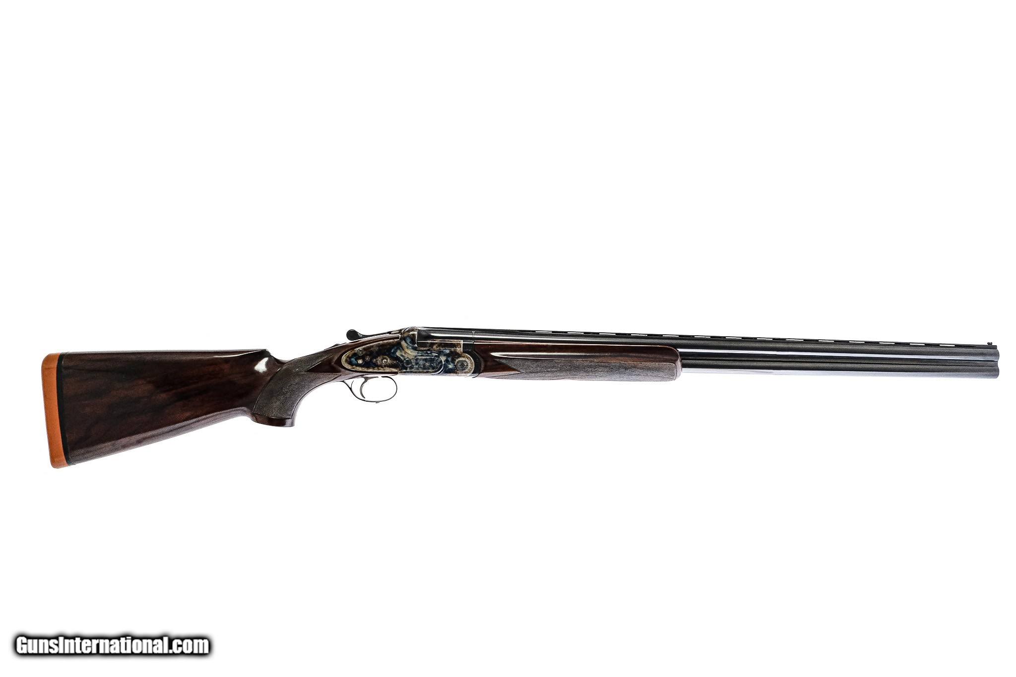 Description: Beretta - SO4, O/U Sidelock, 12ga. 29" Barrels Choked 1/2/Full. Made in 1978, 2 3/4" chambers, manual safety, magnificently engraved with English scroll and border engraving, right hand palm swell, a unique gun, with completely English finished on it, with an English Slivers pad, has a gold clay target on the trigger guard, the gun looks 100% new and unfired, a perfect target gun thats tight and new. All the locks and barrels are jeweled, this is a very high grade gun with a very unusual finish. Obviously special ordered. Inv: 71911 8 lbs. 2 oz. 14 3/4" x 1 3/8" x 2" $9,995.00 CALL 860-225-6581 FOR FURTHER INFORMATION ABOUT THIS GUN & THE INSPECTION PERIOD. SOLD |