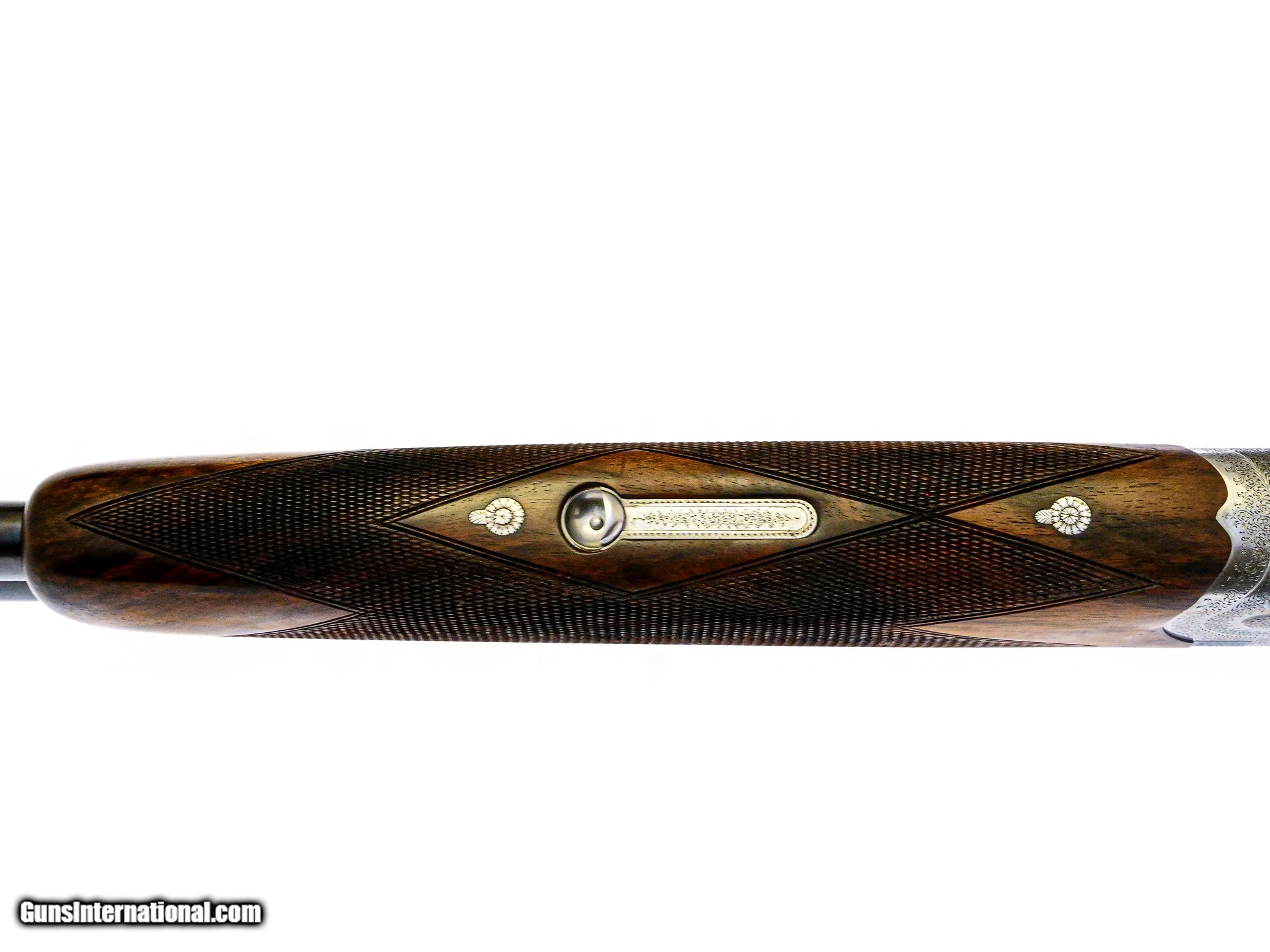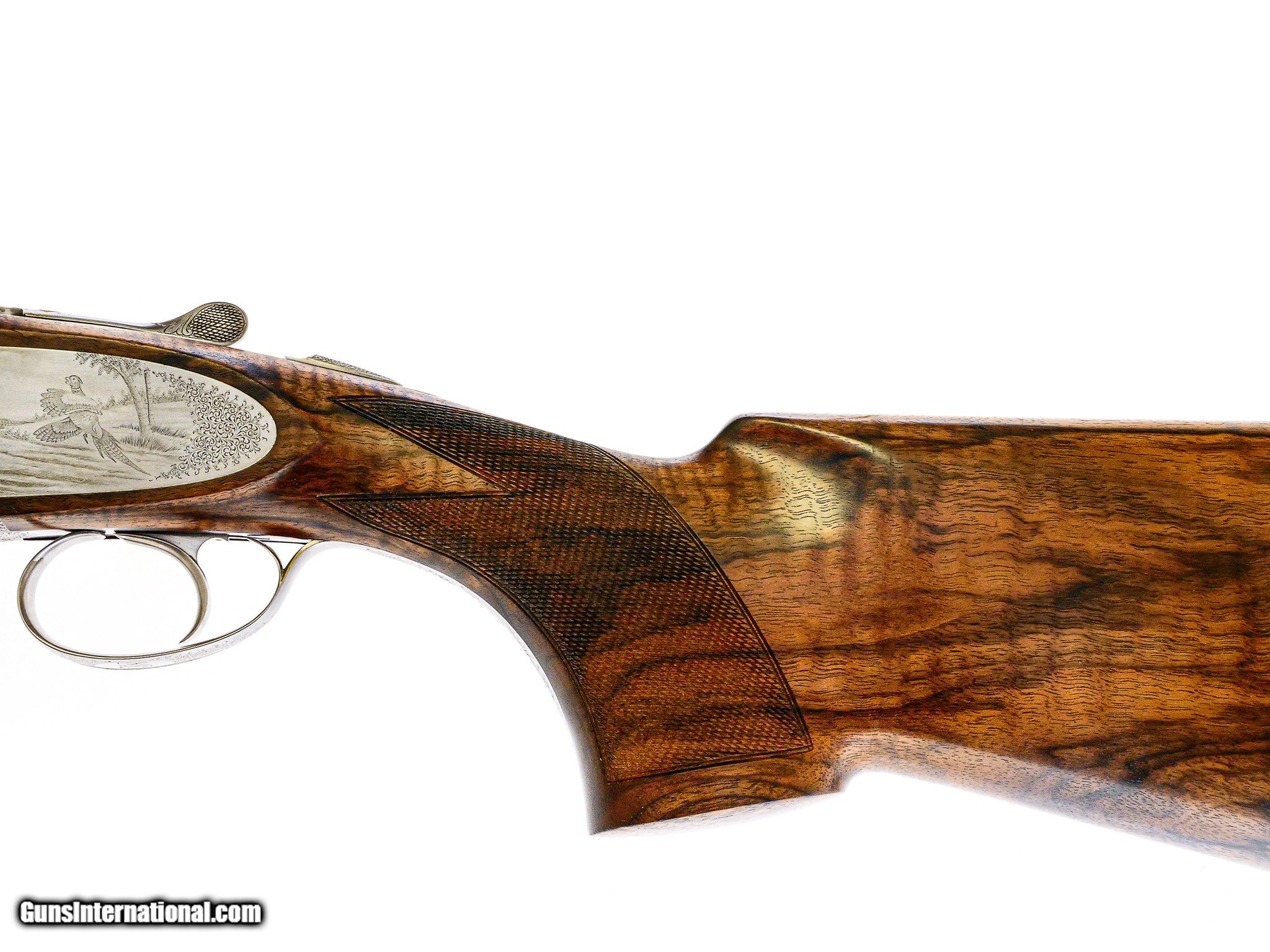 Description: Beretta - SO9 Premium, O/U Sidelock, 20ga. 29 ½” Barrels. This is a special small frame gun. 3” chamber, auto ejector, narrow rib, Bohler steel barrels, multi chokes, game scene engraved by the world famous C. Thomasoni with scroll by Minini. This is a premium SO series gun in a small bore, full pistol grip, gold crown on top lever, and highly figured Turkish walnut. This is a completely pinless and highest grade sidelock they made, this gun is 100% brand new, perfect and unfired. This is an exceptional opportunity to purchase a premium Beretta at a price never seen before. Inv: 67626 6 lbs. 15 oz. 15" x 1 ½" x 2 ¼" $24,995.00 NO RETURNS. CALL (860) 225-6581 REGARDING INSPECTION PERIOD! SOLD |