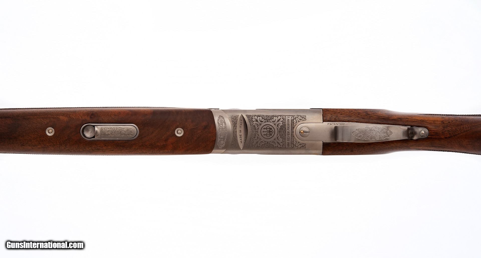 Description: Nice clean gun with a few small handling marks. SOLD Manufacturer: Beretta Model: 686 Silver Pigeon I Caliber Info: 12 Gauge Ejectors: Yes Condition: Very Good Metal Condition: Very Good Barrels: 26 1/2 Action: Boxlock Triggers: Single Gauge Info: 12 Gauge Stock Comb: 1 1/2 Stock Heel: 2 3/8 Stock Cast: Off Fore End: Checkered LOP: 14 Rib: Ventilated Weight: 7.500000 Chokes: 8 Choke Tubes Case: Maker's ABS Case |