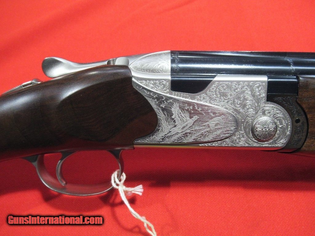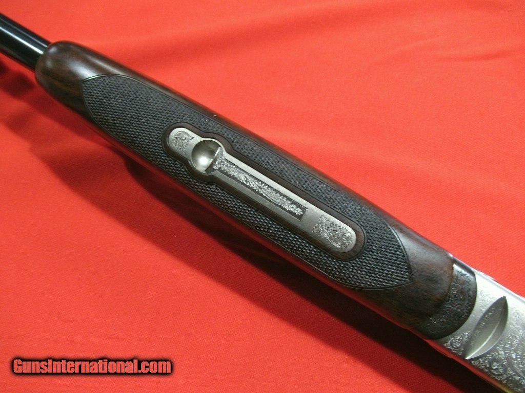 Description: This gun is equipped with the adjustable ejection/extraction system and "Q stock" system. Locking lugs and receiver design offer one of the strongest and most rigid firearm designs on the market. Comes with the factory case and accessories. Game scene engraved. SOLD |
