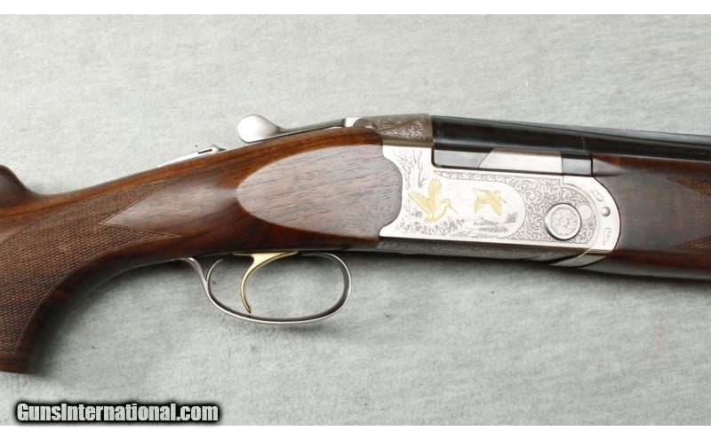 Description: Beretta Ultralight in 12 Gauge. This shotgun has 28-inch ventilated rib barrels, and a Game Scene engraved alloy frame boxlock action with gold Beretta medallion. It is chambered for 2 3/4-inch chambers and has removable chokes. It has a gold single selective trigger and ejectors. It has a checkered pistol grip stock and a hard poly buttplate. This shotgun is in excellent condition with very minor handling marks. Original box. 12 Gauge SOLD Chambers: 2 3/4 Inches Metal Condition: Excellent Wood Condition: Excellent Bore Condition: Bright Barrels: 28 Inches Triggers: Single factory Stock Dimensions: LOP 14 1/2 Inches Fore End: Checkered walnut Butt Pad: Hard poly buttplate Weight: 6 lbs 6 oz Sights: Silver bead on ventilated rib Chokes: Removable chokes Item Location: La Vista, NE |