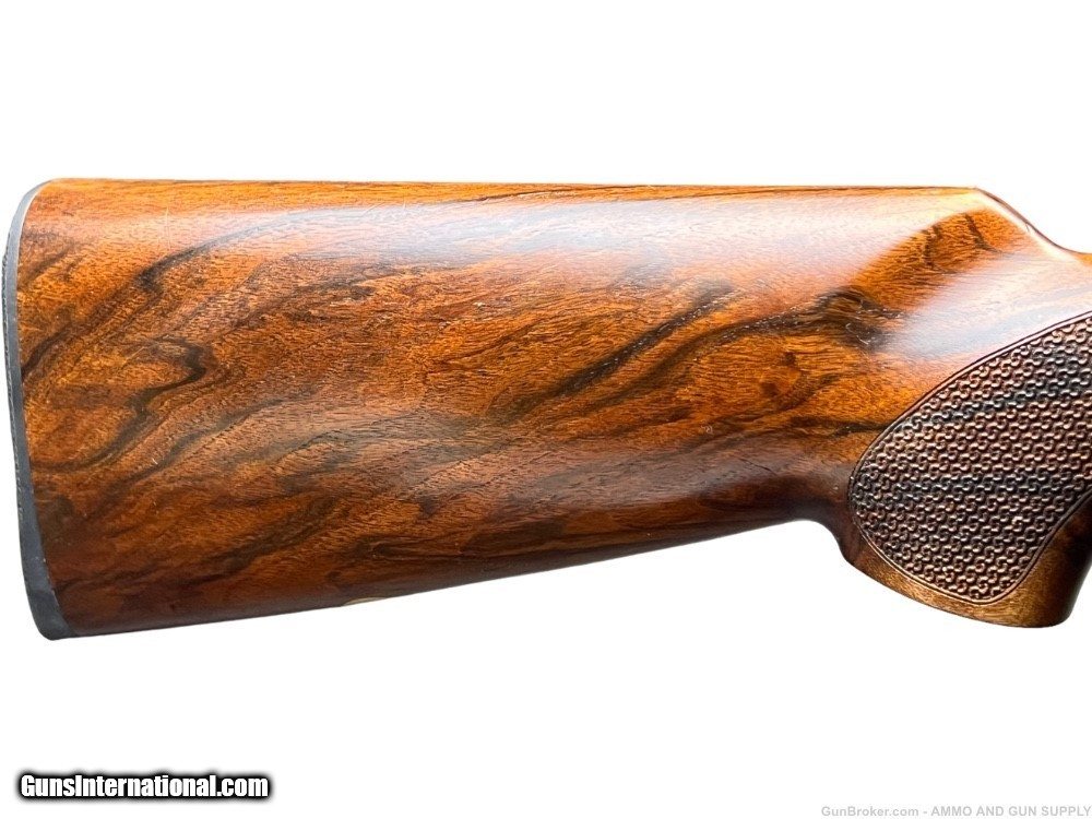 Description: BERETTA ULTRA LIGHT GOLD MANUFACTURER - BERETTA ITALY MODEL - ULTRA LIGHT GOLD SN - R639315 GAUGE - 12 GAUGE CHOKES - MOBIL CHOKE THREADS - IM, IC, FULL, EXTRA FULL(2) CAPACITY – 2 DAC - 1.375" DAH - 2.25" LOP - 14.5" WEIGHT - 6LB 2.6OZ BARREL LENGTH - 26.5" PRODUCED - 2009 Step into the world of refined elegance and Italian craftsmanship with the Beretta Ultra Light Gold. This exquisite shotgun, proudly manufactured by Beretta Italy, stands as a testament to the beauty and precision that the brand is renowned for. At its core, the Ultra Light Gold is a 12-gauge masterpiece, a symbol of power and versatility on the field. The inclusion of five Mobil choke threads, offering a range of options from improved cylinder to extra full, ensures that you are equipped to adapt to any shooting scenario with finesse and precision. Weighing a mere 6 pounds and 2.6 ounces, this shotgun is a feather-light wonder, allowing you to carry it with ease on your hunting expeditions. Its sleek and streamlined design is matched by the perfection of its balance, making it a graceful extension of your form as you take aim at your targets. Delighting both the eye and the soul, the Ultra Light Gold features Mirage engraving, a true work of art adorning its action. Behold the exquisite gold grouse gracing the left side and a gold peasant on the right side of the action, a tribute to the very nature that you seek in the wild. As your fingers dance upon the crisp trigger, the shotgun becomes an extension of your senses, offering the utmost responsiveness for precise shooting. The vent rib barrel, crowned with a red fiber front bead, ensures that your aim is true and unwavering, like an artist's brush creating a masterpiece on the canvas. Every detail has been carefully considered in the design of this shotgun. The stock, with its super light checkering pattern, invites your hand to embrace it comfortably, connecting you to the heart of the firearm. The wood grain is a sight to behold, a testament to the artistry of nature itself, lovingly handcrafted into the stock. Elegantly presented in its original Beretta hard case, this shotgun is a treasure to behold and an absolute joy to wield. Whether you are a seasoned hunter seeking the perfect companion for the field or an aficionado of fine firearms, the Beretta Ultra Light Gold will not disappoint. Its legacy of timeless beauty and exceptional performance is destined to stand the test of time and become a cherished heirloom for generations to come. FLAT $50 S/H/I. 4%CREDIT CARD FEE APPLIES. FOXTROT IS A LICENSED FFL DEALER SOLD Shotgun Gauge: 12 Gauge, 12 Gauge Manufacturer: BERETTA Model: ULTRA LIGHT GOLD Serial Number: R639315 Bore: 12 Chambers: 2.75" OR 3 Ejectors: YES Condition: EXC Metal Condition: EXC Wood Condition: EXC Bore Condition: EXC |