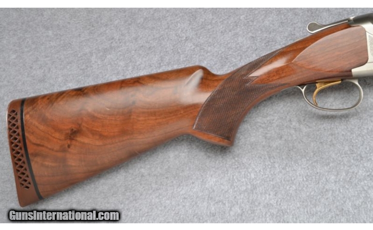 Description: Wood shows a few light handling scuffs and remains very good throughout. Blue and bores are excellent. No box. SOLD Manufacturer: S/N - 09830MZXXX Caliber Info: 12 Ga. Chambers: 3 in. Metal Condition: Excellent Wood Condition: Very Good Bore Condition: Excellent Barrels: 28 in. Vent Rib Triggers: Single - Selective Safety Stock: Checkered Walnut P.G. Stock Dimensions: 14 1/4 in. LOP Fore End: Checkered Walnut Butt Pad: Brown Vented Rubber Weight: 8 1/2 lbs. Sights: White Front Bead Chokes: Invector Plus Choke Tubes - Imp. Cyl. / Imp. Cyl Item Location: Woodbury, MN |