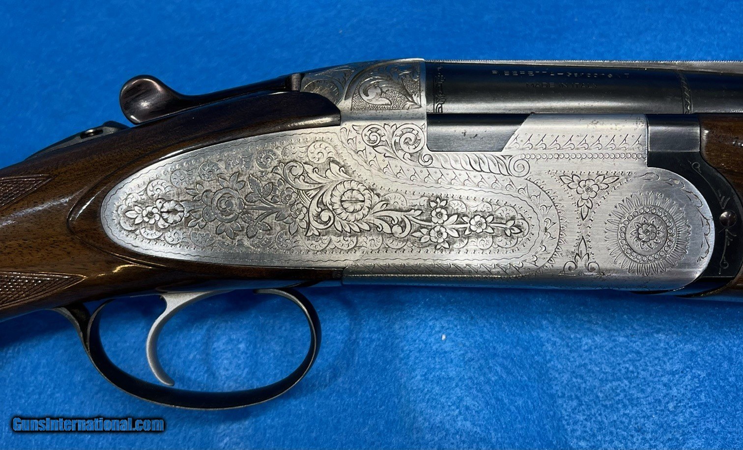 Description: MAGNIFICENT BERETTA "B6", 12 GA. 26" BARRELS, LOP, 14 3/4" CHOKED IMP. CYL.,& MODIFIED.SER. P52002. THIS TOTALLY ENGRAVED BEAUTY IS IN FLAWLESS CONDITION. TRUTHFULLY, THERE IS NOT A VISIBLE BLEMISH ANYWHERE. THE FACTORY BLUE IS 100%. THE FACTORY LACQUER ALSO 100%. THE CHECKERED FOREARM AND PISTOL GRIP, NOT EVEN A FLATTENED POINT. THE INTERIOR IS PRISTINE AND SHOWS NO REAL SIGN OF BEING USED. IT IS FROM AN ESTATE AND IT IS VERY POSSIBLE IT WAS A "CABINET QUEEN". THIS ABSOLUTELY PERFECT "B6" WILL ENHANCE ANY COLLECTION. AND WILL BE A REAL HEAD TURNER AT THE SHOOT. INVESTMENT PRICED, SHIPPING INCLUDED AT.... $1995.*** ***100% OF THE GUN'S PIURCHASE PRICE IS SATIS FACTIION GUARANTEED SOLD Shotgun Gauge: 12 Gauge |