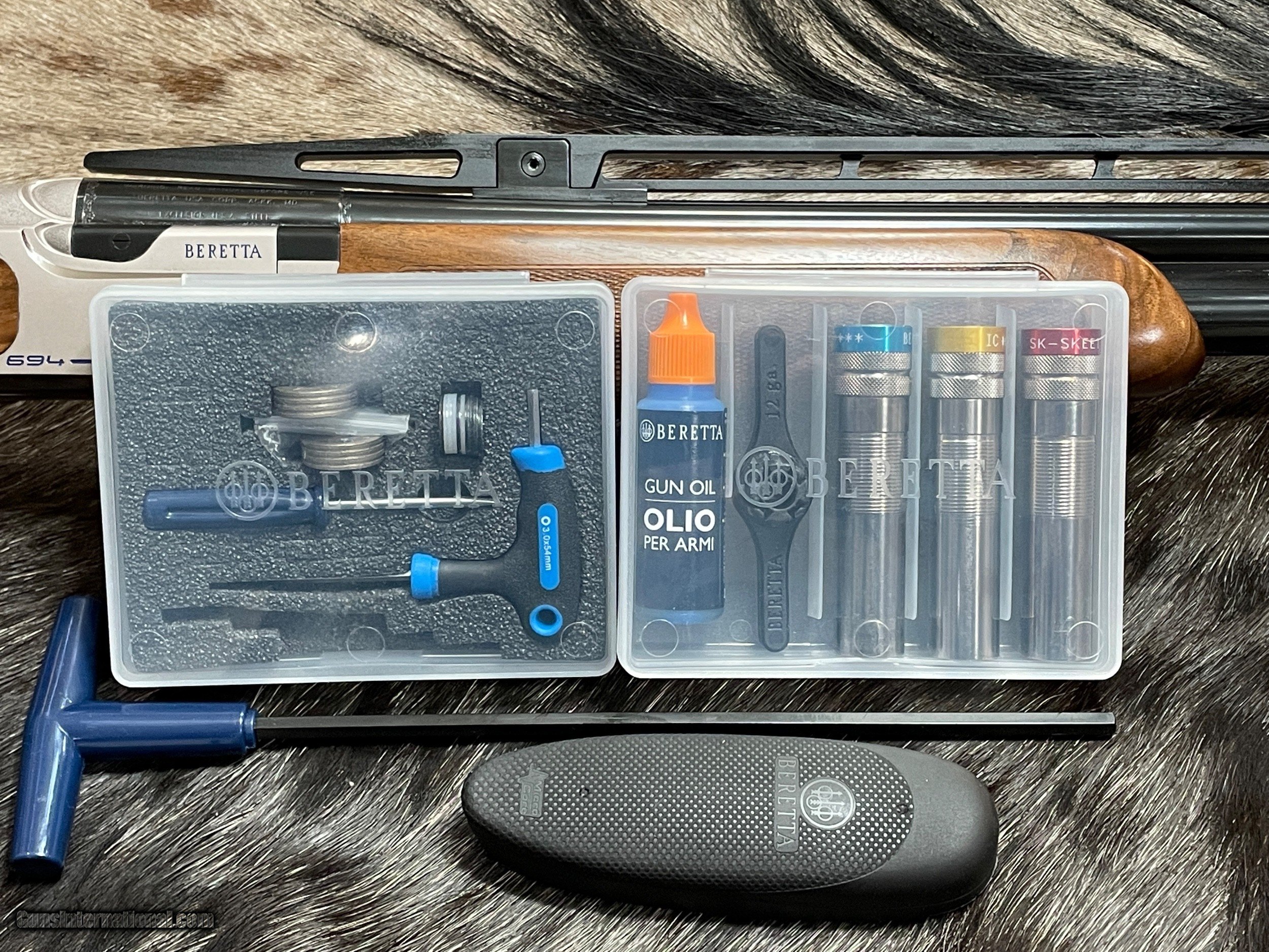 Description: NEW BERETTA 694 ACS SPORTING 12 GAUGE 32" BARREL SHOTGUN WITH BFAST AND GORGEOUS WALNUT STOCK - LAYAWAY AVAILABLE. UNLIKE OTHER SELLERS WHO USE STOCK, GENERIC PHOTOS, THE SHOTGUN YOU SEE IN THE PICTURES IS THE SHOTGUN YOU WILL RECEIVE! The 694 ACS is a high-performance under/over shotgun designed and tested by Beretta’s professional shooting team, and has been meticulously developed for enhanced ergonomics and perfect balance. Ideal for both hunting and trap shooting, the 694 ACS is equipped with Beretta’s exclusive B-Fast Adjustable Stock. The B-Fast system features a simple, yet innovative design that provides multiple adjustment options: a maximum height of 11mm, a maximum drop of 6”, a maximum rotation of 11° , and a maximum lateral adjustment of 13mm. Adjustments are made via spacers which function as “memory” for the height of the comb, allowing the shooter to modify the cast without losing height adjustment. The B-Fast’s locking screws provide a perfect fit to the towers, ensuring the best possible locking of the comb. The shape of the action has similarly been optimized for competition/hunting by providing an increased field of vision for tracking moving targets. Another performance-focused feature of the 694 ACS is the new steel forend iron system, which utilizes redesigned geometry and barrel hook to improve the sensation of opening the gun’s breech, and a refined forend coupling system employs a piston-operated stud in an optimal position – separate from the forend iron – and a self-regulating auget button. Other features of the 694 ACS include Beretta’s classic closing system, which makes use of trapezoidal shoulders with two robust pins that protrude from the breech face and insert themselves into their respective breech housings, while dual hinged studs interface with the monoblock housings. This results in a closing action that is smooth, solid, and exceptionally reliable. In addition, the 694 ACS’s barrels are composed of Beretta’s exclusive Steelium Plus barrels which guarantee a dense, uniform pattern shot after shot, and a lifetime of service. FEATURES OF THIS GREAT BERETTA 694 ACS OVER/UNDER SHOTGUN INCLUDE