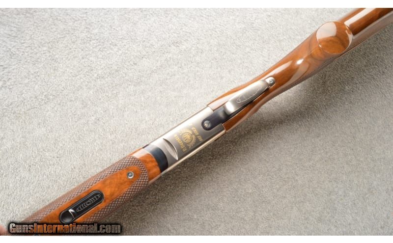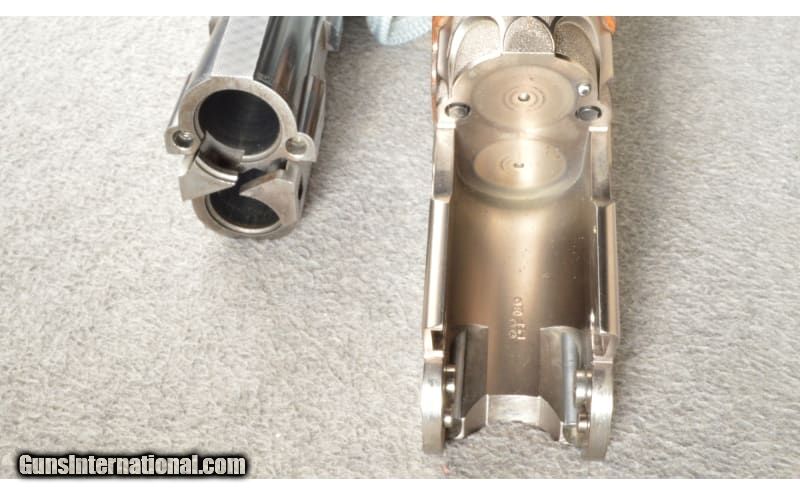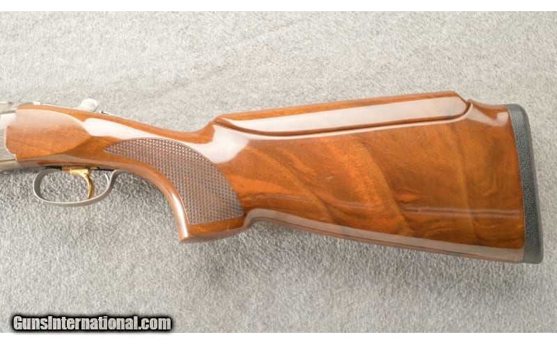 Description: P. Beretta 682 Gold E X Trap 12 gauge. This gun has matte blued barrels with titanium nitride receiver. The 30" over/under barrel has a fiber optic front sight with a mid-bead and ejectors. This has Briley Optima Spectrum extended chokes, "IM & LF". The 34" single barrel has a fiber optic front with a mid-bead and a single ejector. The choke is a flush Optima choke tube, "FULL". The top tang is marked "P19034B / 682 GOLD E". The water table is marked with Italian proofs. The bottom of the receiver is marked "MADE IN ITALY", "BERETTA / 682 GOLD E", and has the three arrow logo. The trigger guard has a circular engraving on the bottom side. The sides of the receiver are marked "BERETTA", "682 GOLD E", the Beretta logo, and has crossing circular lines. The left of the top chamber is marked "X TRAP / BERETTA - MADE IN ITALY / GARDONE V.T." and the right is marked "BERETTA USA CORP. ACCK. MD". The left side of the top barrel is marked "OB 12 GA. 3" - 30" / "OPTIMA-BORE", "18.5", an Italian proof and the right side is marked with a warning address. The bottom of the monoblock is marked "P19034B". The left side of the bottom barrel is marked "- EXCELSIOR – HIGH STRENGTH ALLOYED STEEL", "18.5", an Italian proof. The right side of the lower barrel is marked "24001 M". The top left chamber of the mono barrel is marked "X TRAP / BERETTA - MADE IN ITALY / GARDONE V.T." and the right is marked "BERETTA USA CORP. ACCK. MD". The left side of the top barrel is marked "MONO TOP - OB 12 GA. 3" - 33" / "OPTIMA-BORE", "18.5", an Italian proof and the right side is marked with a warning address. The bottom of the monoblock is marked "P19034B". The right side of the barrel is marked "- EXCELSIOR – HIGH STRENGTH ALLOYED STEEL". The bottom side of the lower blank barrel is marked "22339 M". The stocks are two-piece checkered walnut with a finger groove forend, pistol grip, adjustable straight comb, and a black rubber buttpad. Comes with the factory hard case and owners manual. Very exceptional P. Beretta 682 with light handling wear. 12 Gauge SOLD Chambers: 3" chambers on all barrels. Metal Condition: 99% finish remaining. Wood Condition: 98% remaining with a few minor dings mainly on the stock area. Checkering is excellent. Bore Condition: Bright smooth bores. Barrels: "30""O/U barrel, 34"" single barrel. Triggers: Single. Stock Dimensions: Adjustable. Fore End: Checkered. Butt Pad: Rubber. Weight: 9 LBS Sights: Fiber Optic front on all barrels. Chokes: Removable. Item Location: Owatonna, MN |