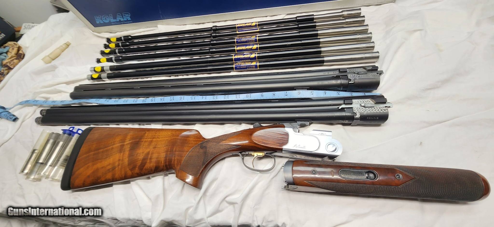 Description: Guns Listing ID: 643756 Beretta 682 Skeet 12ga Over Under 30\" Barrel with 6 chokes 28\" Carrier Barrel that accepts the included insert tubes; 20ga, 28ga, .410ga. Insert barrels have ejectors that line up with carrier barrels ejector. Beautiful wood stock, small crack on inner portion of foreend repaired as shown in photo. Comes in a Heavy Duty Kolar Case, that holds everything together and has a latch lock. SOLD Manufacturer: P. BERETTA Model: 682 Condition: Used - Non-Certified Barrels: 30 BARREL Gauge Info: 12 / 20 / 28 / 410 GA Finish: BLACK /W WOOD STOCK |