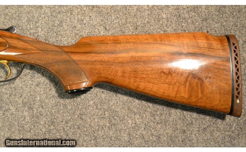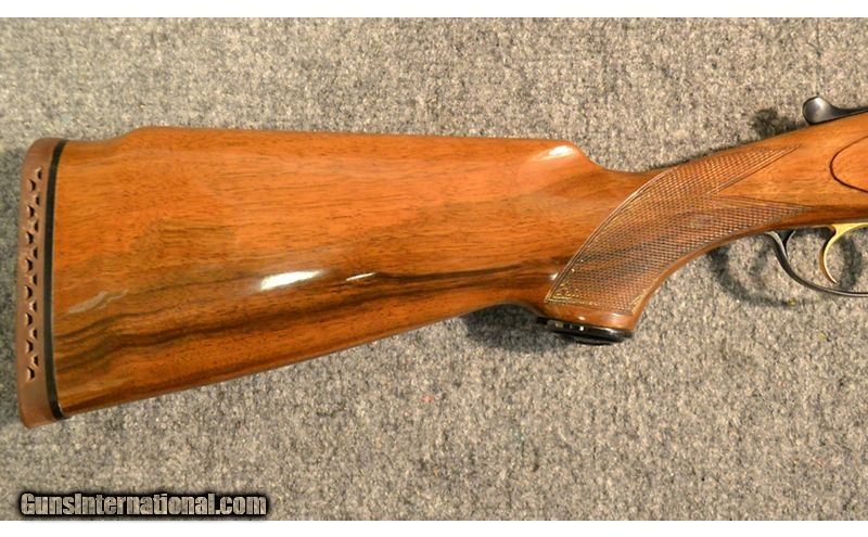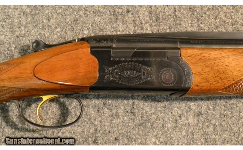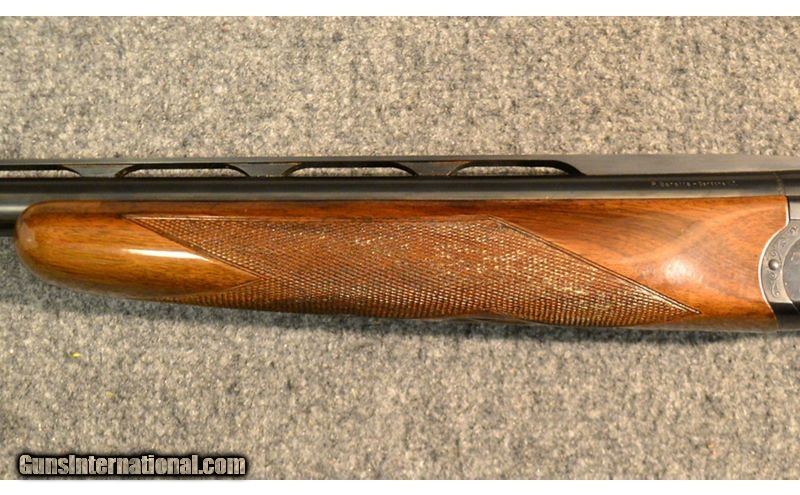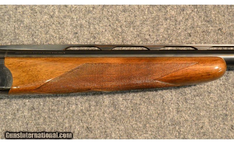 Description: Designed to be a trap gun, the Mark II has all the features one might expect to find on a dedicated clay gun. Heavy but balanced, thick walled barrel with a vented rib, enlarged forend, and a crisp, short-pull trigger. In all around excellent condition, a shotgun that brings class and performance to the range. 12 Gauge SOLD Chambers: 1 Metal Condition: Excellent Wood Condition: Excellent Bore Condition: Excellent Barrels: 32" w/ Vented Rib Triggers: Gold Plated Stock Dimensions: 14.5" LOP Fore End: Textured Wood Butt Pad: Rubber by Beretta Weight: 8.5 lbs Sights: Front & Mid Bead Chokes: Fixed Full Item Location: Thornton, CO |