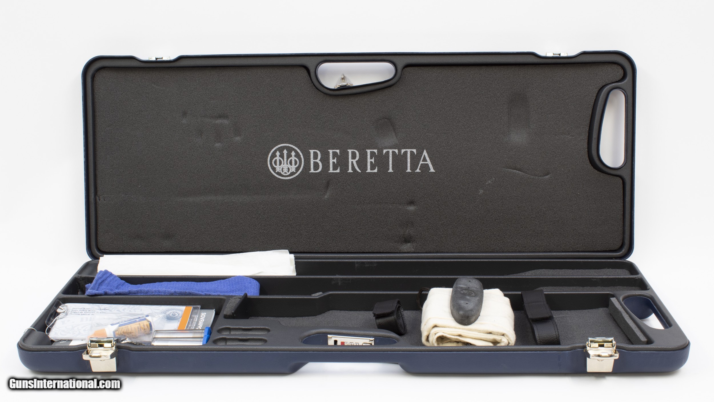 Description: Pre-Owned Beretta 687 EL Gold Pigeon II Sporting Shotgun | 12GA 32" | SN#: N98512B Gauge: 12GA Barrel Length: 32" 28" Barrel Weight: 32" - 1440g 28" - 1450g Bore Diameter: 32" - 18.6 28" - 18.3 Chamber: 32" - 3" 28" - 2 ¾" - 3" Chokes: 32" - 4 Flush Optima Choke 28" - N/A Rib: 32" - 10mm - 8mm Tapered 28" - 10mm - 11mm Reverse Tapered Stock Dimensions Drop at Nose: 1 ½" Drop at Heel: 2 3/8" Cast: RH Length of Pull: 14 ½" ?Forend Style: Schnabel Comb: Fixed Weight: 7lb 12.7oz w/32" Barrel Shotgun Condition Barrel(s): Excellent Condition: Both barrels in excellent shape with no signs of pitting or rust. Minor blemishes in bluing at muzzle of 32" barrel. Receiver: Excellent Condition: Gorgeous condition with no scratches, dings or dents. Game scene engraving is incredibly vivid. Firing pins free of any visible cratering. Forend: Very Good Condition: Near immaculate save for one blemish at the schnabel. Checkering is in great shape throughout. Stock: Good Condition: Overall great shape, small patch of dents and scratches to the left side and small dull patch on the right side in the finish. Manufactured in 2002, this pre-owned Gold Pigeon II from Beretta is in great shape overall. The gun is fit with a pistol grip stock with full side plates with game scene style engraving. The gun come with a spare 12GA 28" sporting barrel (Mobilchoke). Double barrel Beretta case included with original document, tools and spare recoil pad. Did you know that Cole Gunsmithing is one of the only shotgun dealers in the US that is also a factory authorized service center for the brands we sell? We are authorized to perform service on your Beretta, Perazzi, Zoli, Blaser and Fausti shotguns, When you service, customize or buy your shotgun from us you get the Cole Experience- superior service, knowledge and expertise backed by 40 years specializing in the repair and customization of fine Shotguns. Build a relationship with your gun dealer and gunsmith all in one place. We're your one stop shop, and we've been waiting for you! Federal firearms laws do not allow us to ship firearms directly to you. Please contact us for ordering and shipping information. Located in our Naples, Florida Showroom SOLD Shotgun Gauge: 12 Gauge |