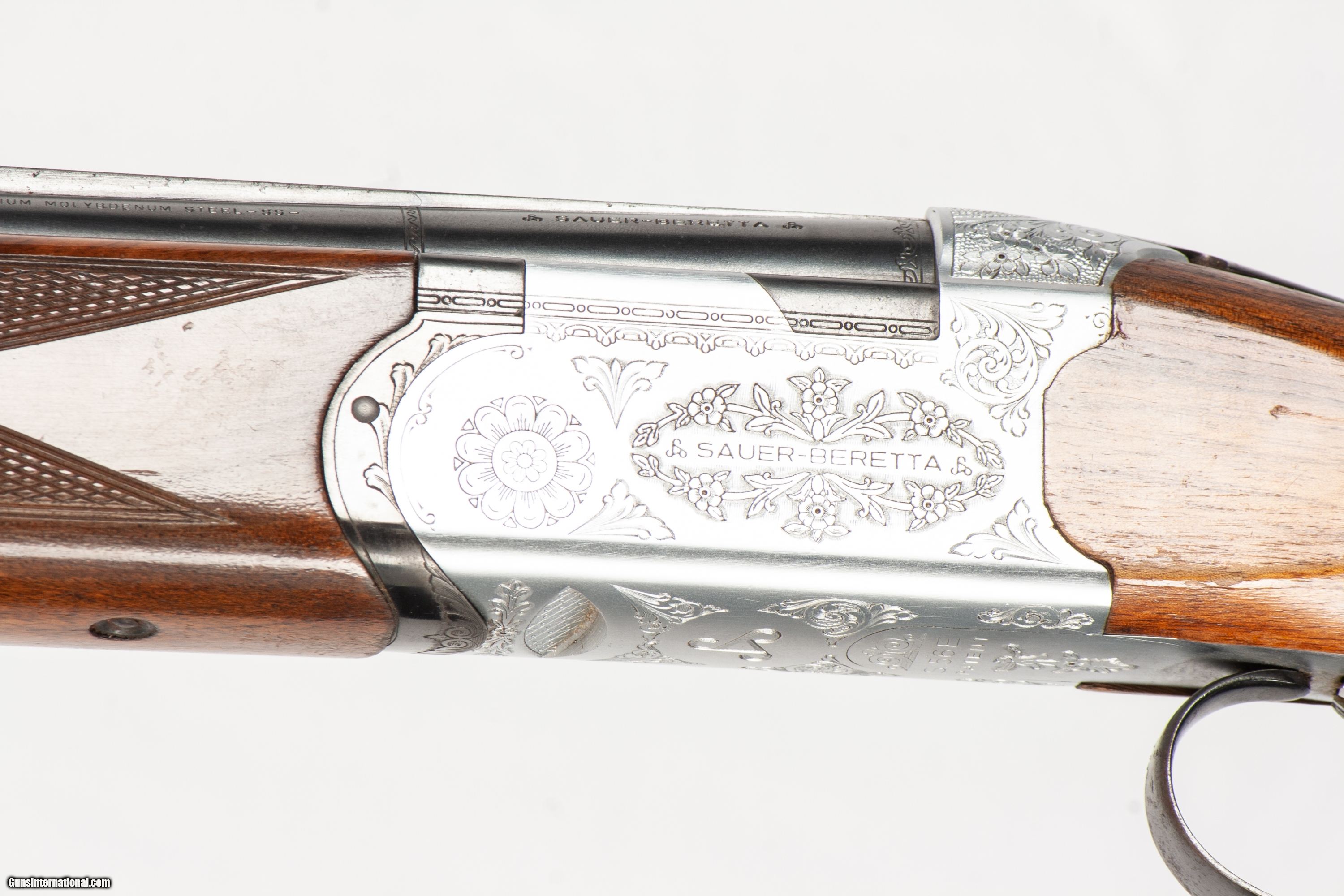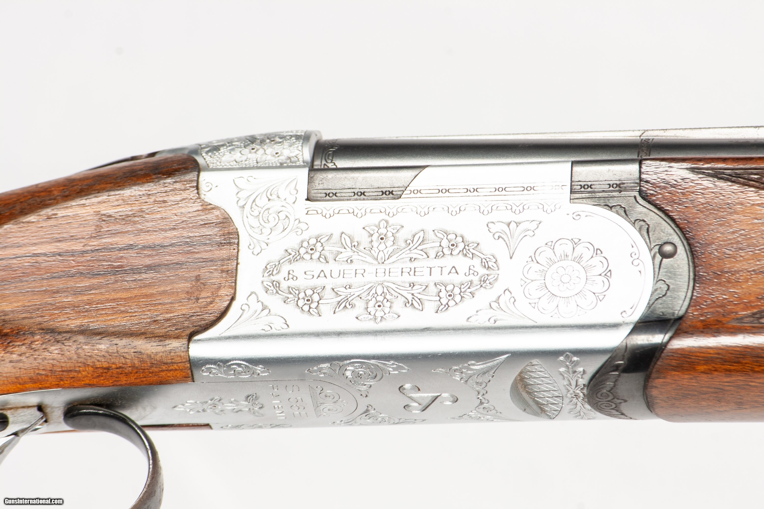A Sauer-Berretta S-56E chambered in 20 Gauge with 28 inch barrels with bright and shiny bores. The upper barrel has a fixed modified choke and the lower has a fixed improved cylinder choke with a 14 1/4 inch LOP. This firearm is in excellent condition and is covered by Dury's Lifetime Warranty.