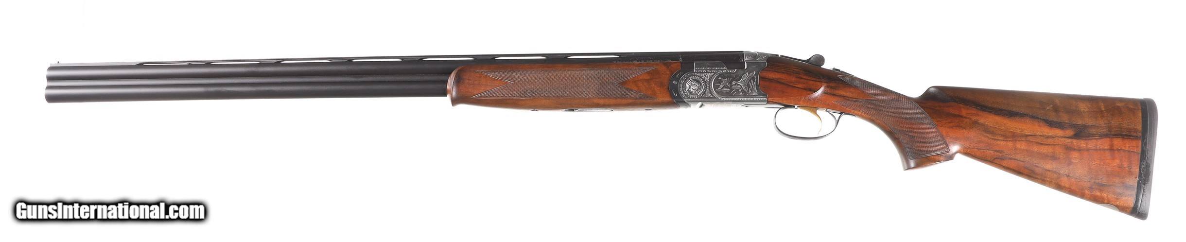 Description: Jackie Stewart Rolex 1995 Jubilee Beretta Model 686 20 Ga with 28" Vent rib Bbl and interchangeable chokes. Coin finished game scene engraved receiver with Special Gleneagles Main house scene engraved on underside. Commissioned by Rolex in 1995. Single selective trigger with ejectors and checkered pistol grip walnut stock with factory pad. 14 1/2" LOP 1 1/2" DAC 2" DAH. Cased Condition. Very fine with most blue finish remaining on Bbl, bright bores and mechanically excellent. A small amount of oxidation on the under side of receiver. Stocks are excellent with some handling. Case is very good. • Free Shipping, No Credit Card Fees. • Lay-a-way available for this firearm. • 1/3 Down, a 1/3 in 30 Days 1/3 in 60 Days. SOLD Shotgun Gauge: 20 Gauge Manufacturer: Beretta Model: Silver Pigeon Jackie Stewart Rolex Serial Number: M93403B Barrel Length: 28 |