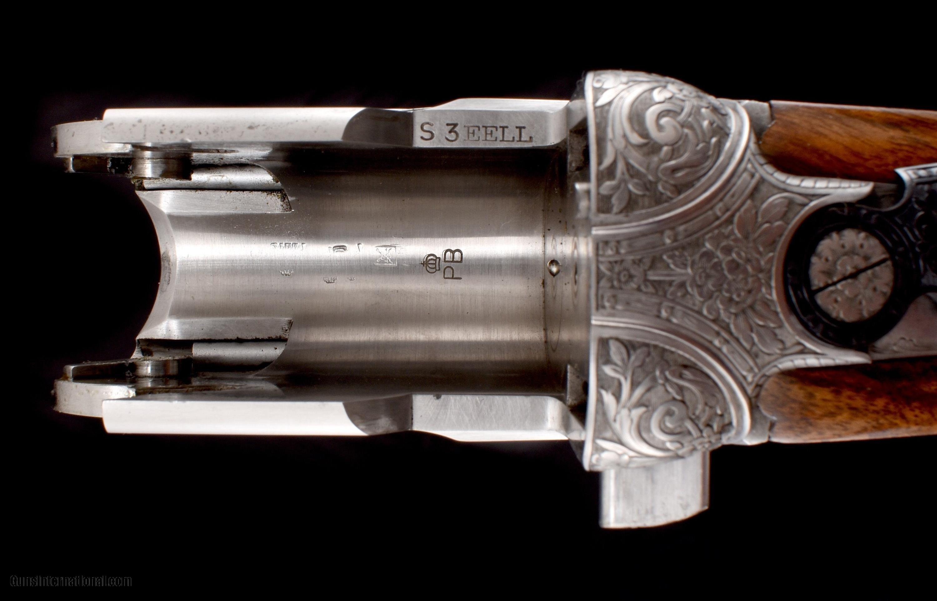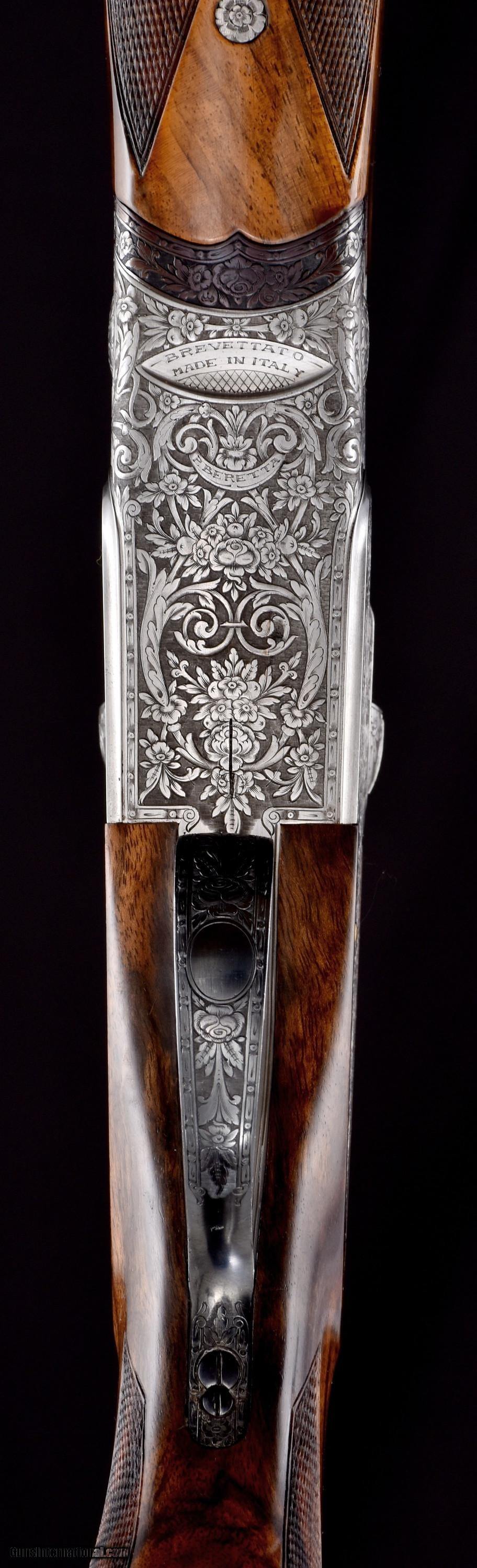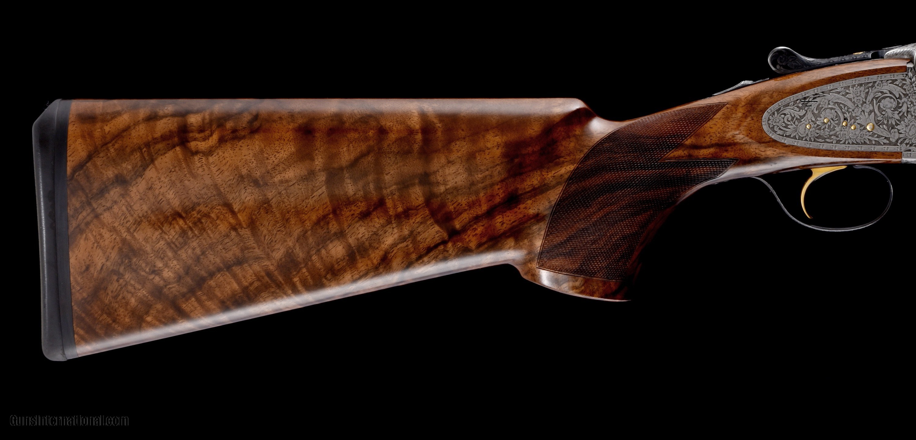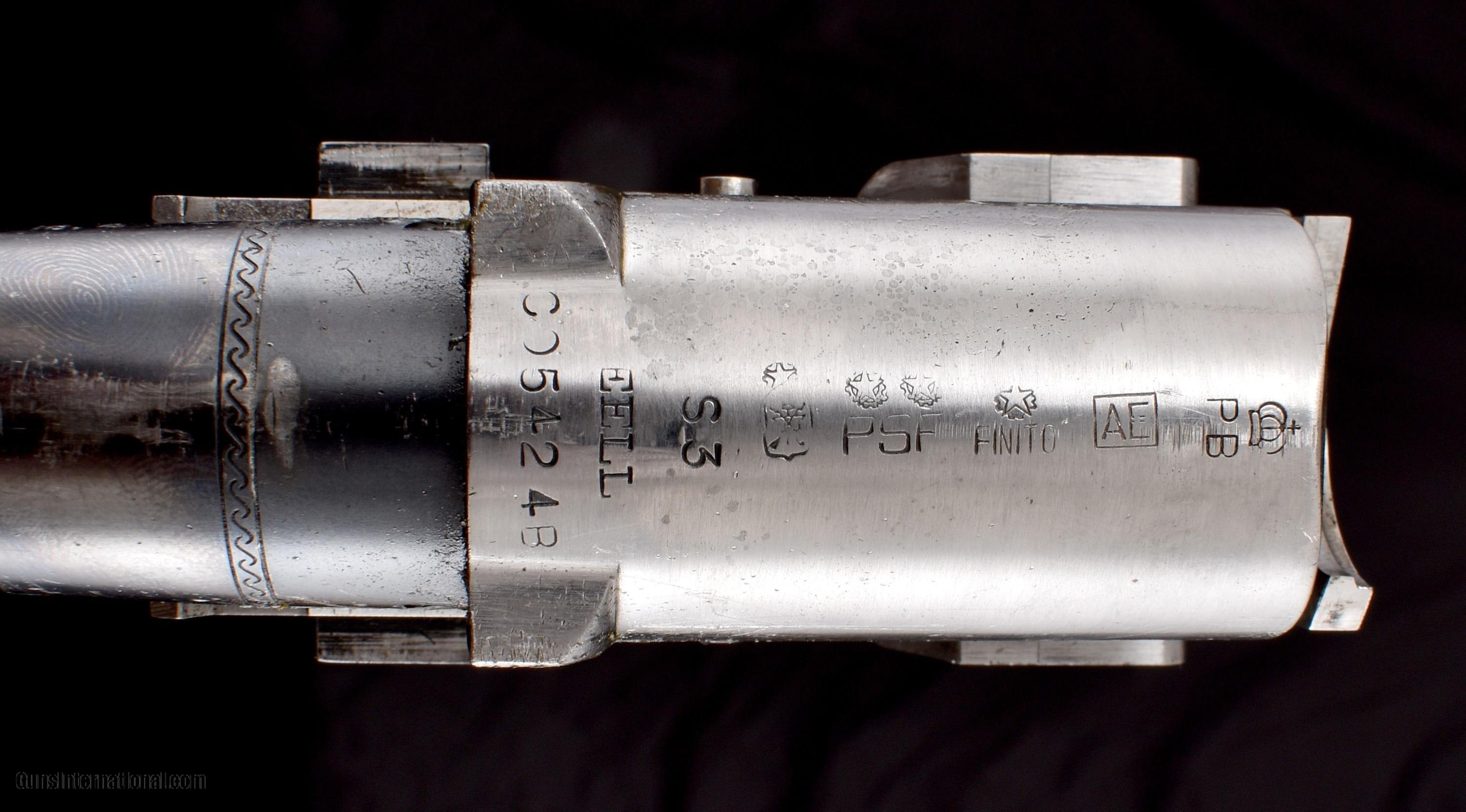 Description: Beautiful Beretta S3 EELL 12ga target gun. Made with 28" Bohler Steel barrels that are ported at muzzle end. Forend is checkered in point pattern with engraved and blued latch release and iron. Sidelock is beautifully floral scroll engraved with gold washed pins in near full coverage as seen in the photos. Blued and engraved trigger guard. Gun made with gold plated single trigger, auto ejectors, non-auto safety. Flat knob pistol grip walnut buttstock is beautifully figured as seen in the photos and terminates with a thin black pad. Stock has a right hand palm swell. Overall, the gun remains in excellent condition with more than 95% beautiful finishes remaining throughout. Bores are brilliant and shiny. Mechanics are excellent. The gun is tight and has not been shot a great deal. These Beretta's represent a great value in today's marketplace. They are fully handmade and finely polished with gold washed internals. This gun is priced at $8795 plus shipping to your FFL. Please dont hesitate to contact me with any questions or reasonable offers at (704) 280-2382 or via PM on this site. SOLD Curio/Relic: Yes Shotgun Gauge: 12 Gauge Manufacturer: Beretta Model: S3EL Serial Number: C05424B Barrel Length: 28 Chambers: 2-3/4 Ejectors: Yes Condition: Excellent Metal Condition: Excellent Wood Condition: Excellent Bore Condition: Bright and shiny Triggers: Gold plated Single Trigger Stock Comb: 1-1/2 Stock Heel: 2-1/8 Butt Pad: Thin "Kick-EEZ" brand pad LOP: 15 Weight: 7lbs. 8oz. Chokes: Tubes |
