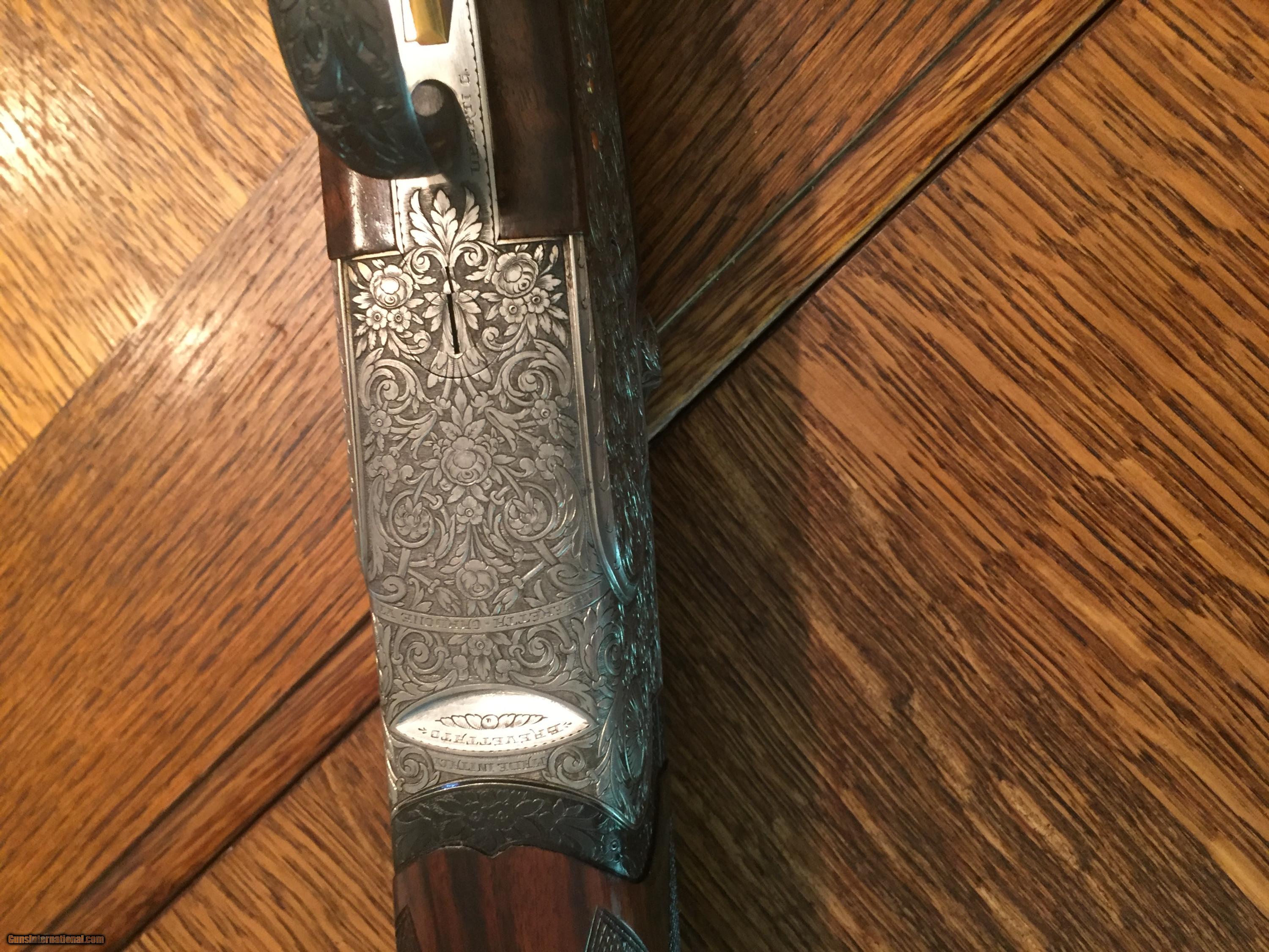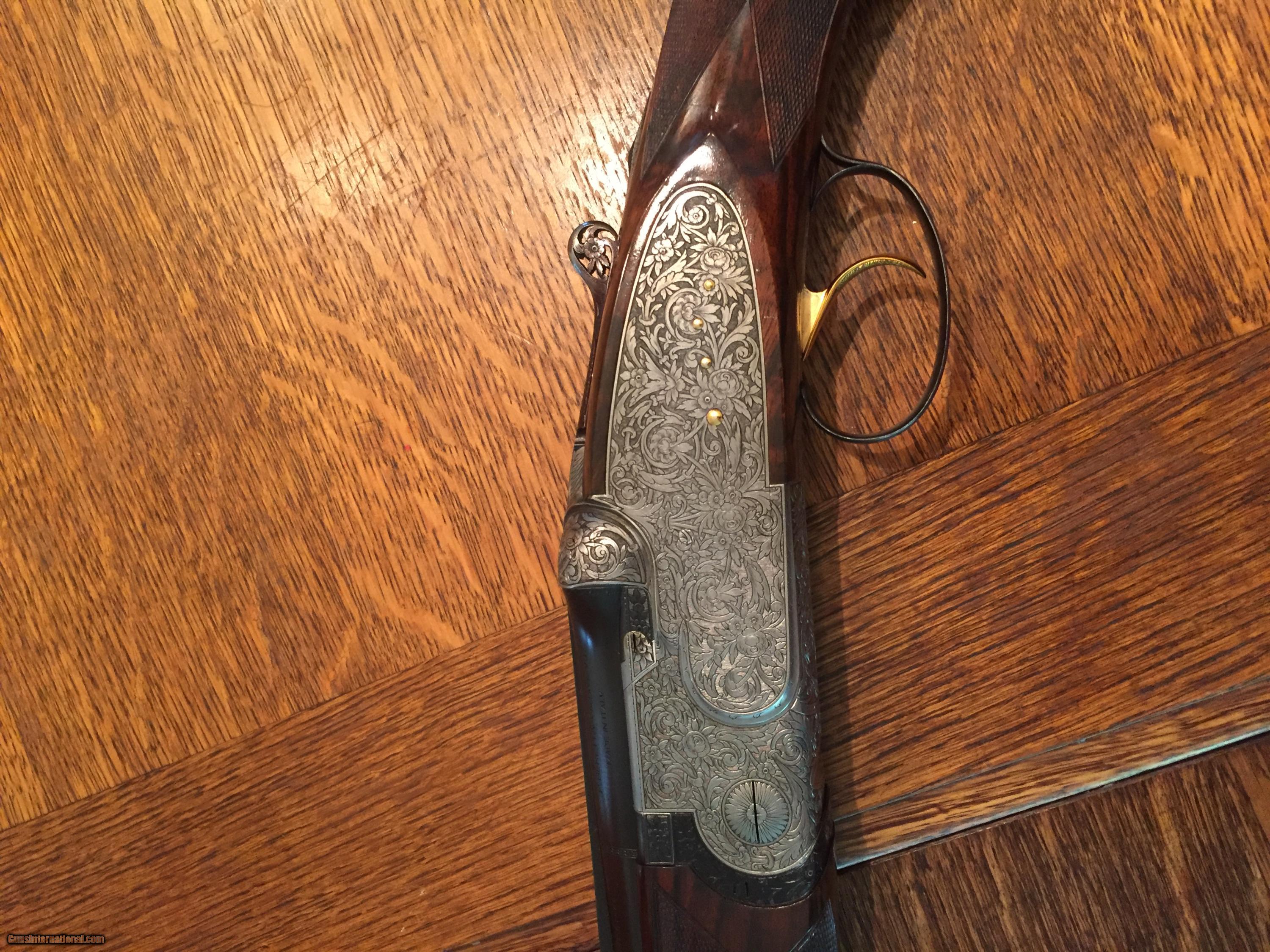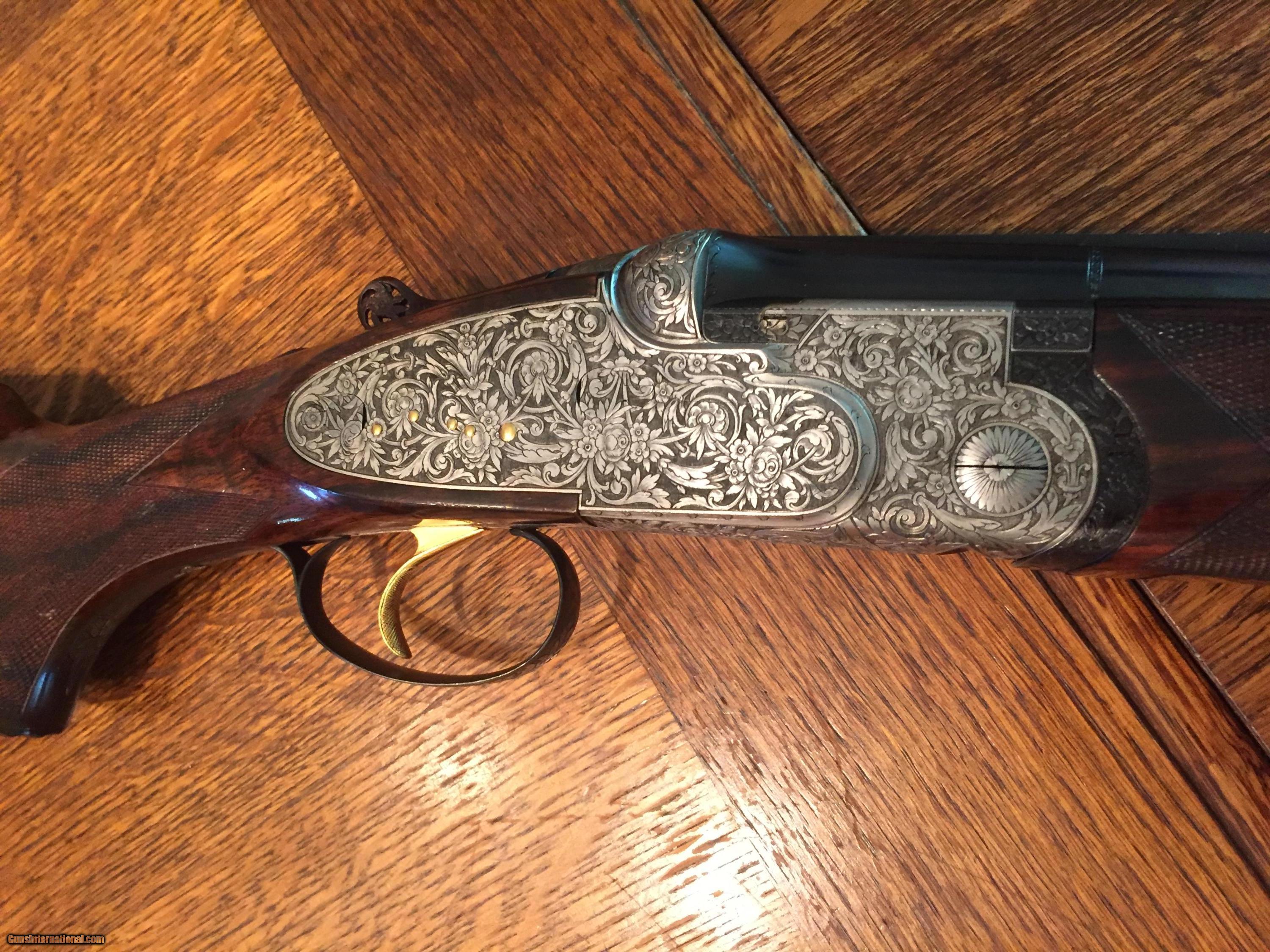 Description: I have never seen a hand detachable Sidelock Beretta like this one. 1966 full custom production. 28" lightweight barrels with .729 bores both. Chokes are .014 and .019. Single non-selective trigger. Fantastic stock that measures 1 1/2" x 2 3/8" x 16" (yes you read that right, 16") to a checkered butt. Amazing weight of 7lb 2oz with those barrels and all that wood. If you are tall like me, you know that it is impossible to find a Sidelock Beretta with a long enough stock. This gun is alive, and as good as they could make them at the time. Barrel blue 99%, stock finish 98%, checkering 99%. Needs nothing. Delivered in aluminum hard case. $11,900 delivered in the con US. No trades please at this time. You will never see this stock length again. SOLD Manufacturer: Beretta Model: S3EELL Caliber Info: 12 ga Chambers: 2 3/4 Ejectors: Yes Condition: Spectacular Barrels: 28 Barrel Type: O/U Action: Sidelock Triggers: Single Stock Dimensions: 16" Stock Comb: 1 1/2 Stock Heel: 2 3/8 Stock Cast: 1/4 Butt Pad: Checkered wood Weight: 7lb 2oz Manufacture Date: 1966 Choke Left: .014 under Choke Right: .019 upper Engraving: Full coverage Extras: Hand detachable hidden lever sidelocks Case: Modern aluminum Item Location: Willows CA Minimum Wall Thickness Left: .026 under original as made Minimum Wall Thickness Right: .026 over original as made |