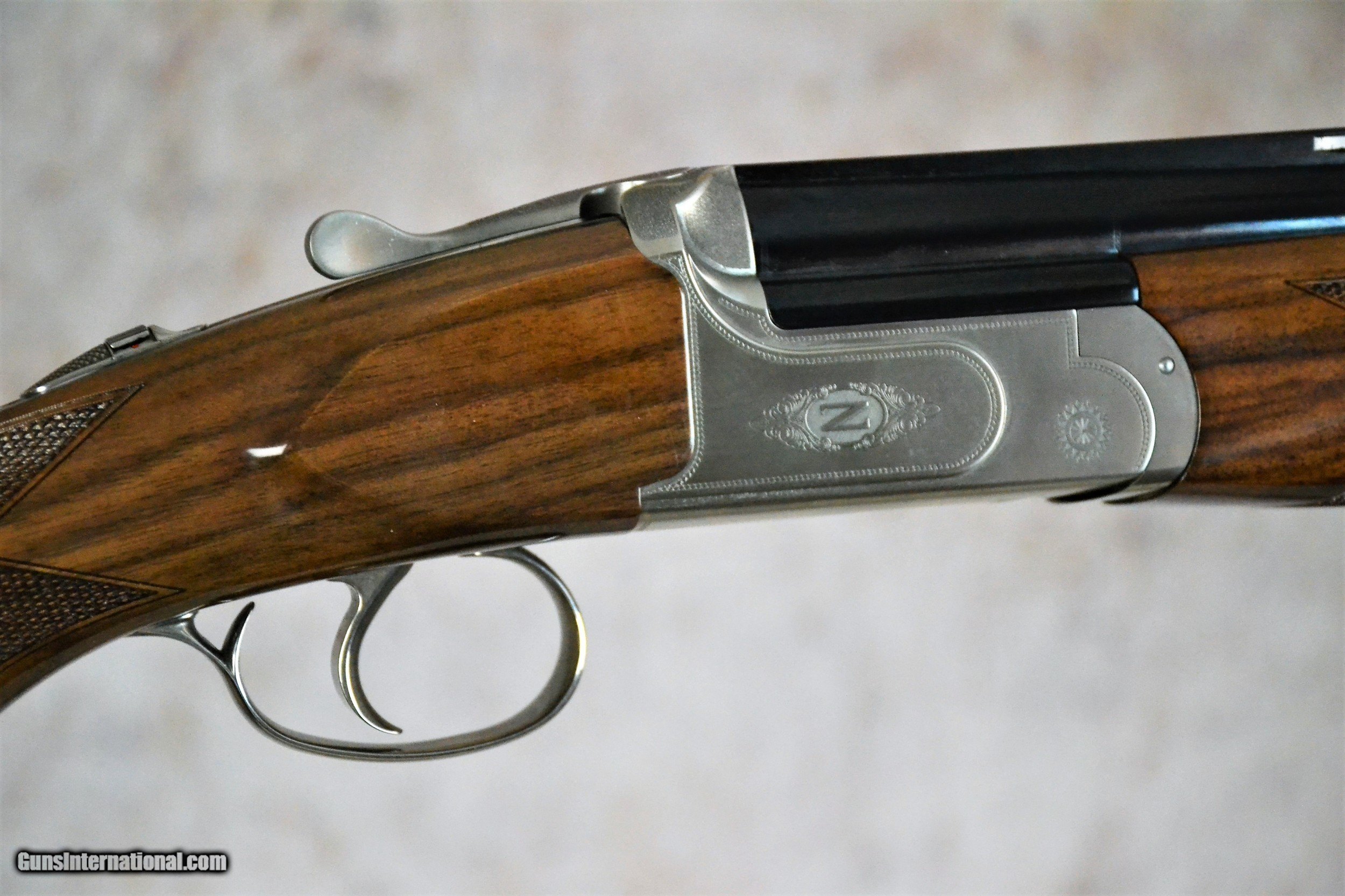 Description: Zoli Z-Sport Sporting 12g 32" SN:#253043 The entire Z-Gun range is fitted with a forged, stainless steel, monoblock action that makes it possible to encompass a Boss-type lock system and an easily extractable trigger group. The different stocks on offer are all easy to disassemble and interchangeable. But the real asset of this range, as with all Zoli guns, is to be uncovered in the barrels, all entirely silver soldered, affording a softer, more gradual recoil in spite of the extreme ballistic performance. The techniques they employ to make these barrels is the outcome of over 50-years of experience tehy have acquired thanks to their in-house production. The Z-Sport model, pictured below, is dedicated to shooting sports. The engraving is clean and essential, decorated by an ornate border. The Z-Gun logo is featured in relief on a non-glare stipple top, on both action sides and back. The barrels of the Z-Sport model are supplied with a tapered top rib, fully checkered, in keeping with classical tradition. Thanks to a choice of several barrel lengths and stock configurations, the Zoli Z-Sport is able to satisfy almost any specifications. Federal firearms laws do not allow us to ship firearms directly to you. Please contact us for ordering and shipping information. Gauge: 12g Barrel Weight: 3lb 8oz Barrel Length: 32" Chamber: 3" Bore Diameter: 18.6 Chokes: 5 Zoli Extended Chokes Rib: Flat Tapered RIb 11 x 7mm Stock Dimensions Drop at nose: 1 5/8" Drop at heel: 2 1/4" Cast Off: 1/8RH Forend Style: English Sporting Length of pull: 14 3/4" Comb: Adjustable Comb Weight: 8lb 3oz Warranty: 10 Years SOLD |