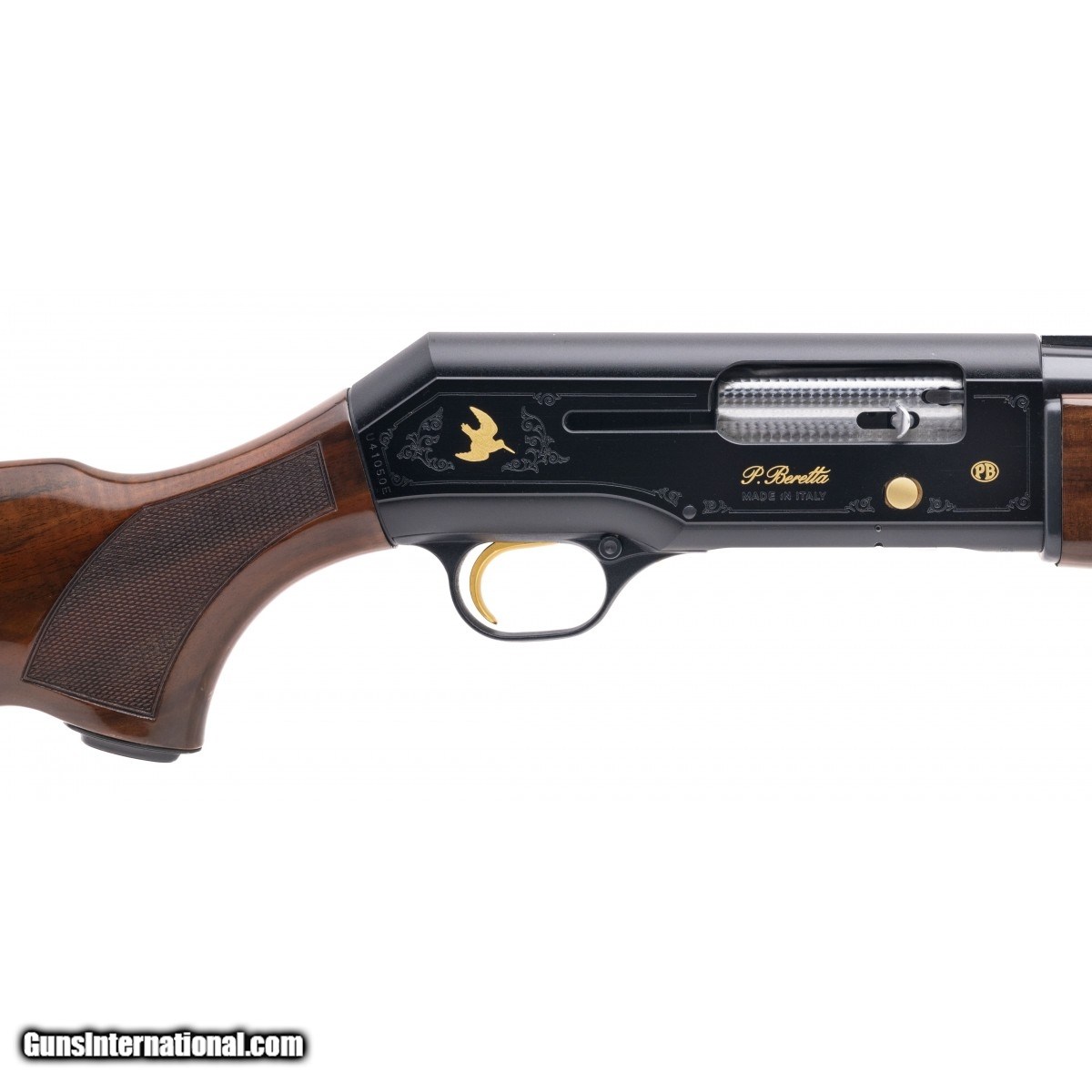 Description: " SN: U41050E. Modern production. 12 Gauge with a 28"" barrel with interchangeable chokes. Bore is very good. Gold mallard semi-automatic field gun. Finish is in excellent condition with engraving and gold inlay on the receiver. Stock is in very good condition with light handling wear noted. Overall very good condition shotgun. SOLD |