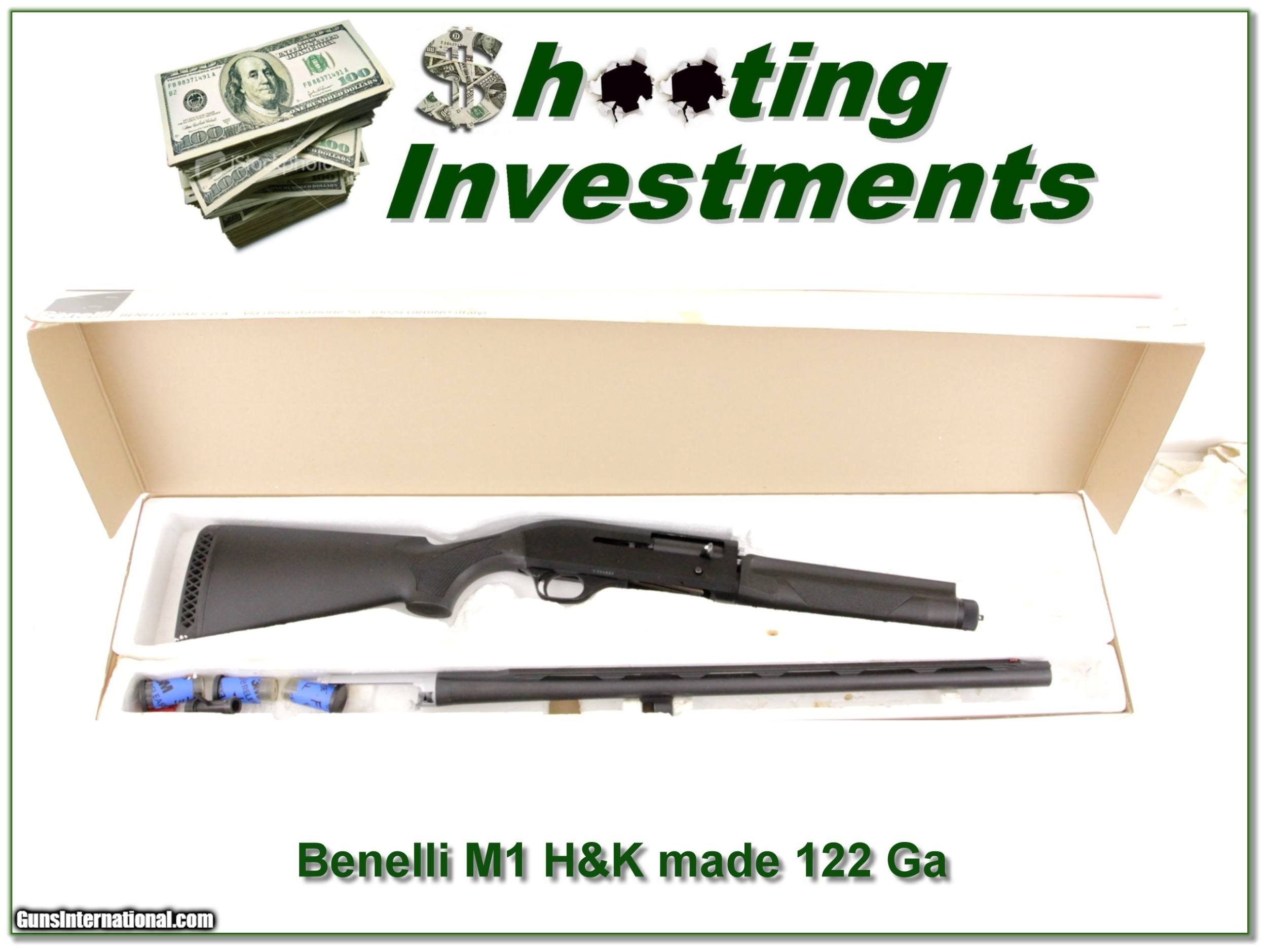 Description: This is a H&K Benelli M1 12 Gauge. It is in excellent condition with just a few shells fired. I see no marks of note on metal or blue. It has a 24in Vent Rib barrel and comes with 4 choke tubes and wrench and in box as seen! I am selling this one on consignment and as such lay-a-way can’t be used. It does of course have the standard 3-day inspection. Shipping with insurance is $39. Please email me with any questions or larger pictures. (Consign your quality firearms with Shooting Investments for only 12%! Let me know if you have any you would like to sell!) 19-0995 Payment: Payment is by Money Order, Cashiers Check or Personal Check. I can now also accept Credit Cards (MasterCard, Visa, Discover & American Express) with a 3% convenience fee. PayPal can be used for some items but never for firearms. Shipping: The shipping charge will be listed in each description. It is $39 for most firearms. Some heavy guns or those insured for over $2000 will be higher. Shipments to Alaska and Hawaii are higher because air shipment is required. Most firearms are shipped on Tuesday and Thursday and usually in 5 days of receipt of payment. We package all shipments carefully and insure them. Optics are shipped Priority Mail and most other non-firearm shipments are shipped First Class. Returns: Our return policy is simple. If for any reason you are not pleased with your purchase, you may return your item for a full refund of purchase price. Ammunition cannot be returned. It is important to us that you are happy. Guns cannot be fired or dissembled before returning them and they must be returned in the same condition as received. Notification of a return must occur with-in 3 days of receipt at your dealer. Shipping, convenience and dealer fees are not refundable and are the responsibility of the buyer. Lay-a-way: If needed, we offer a 60 day lay-a-way option on most firearms. It is 1/3 now, 1/3 in 30 days and 1/3 in 60 days. Lay-a-way firearm sales are final and if not completed the first payment cannot be returned. Consigning your firearms with Shooting Investments: We will help you get top dollar for your firearms. While most local guns shops charge 20% or more, our fee is only 12% with a minimum of $75. At your local gun shop it might take months to sell. Selling on-line provides instant access to thousands of interested buyers. You won’t find any other on-line dealer willing to sell your firearms for only 12% or listing every gun on 3 separate s. Selling through an House typically costs the seller 15% and the buyer an addition 15% (so 30%) and you have to wait several months to sell and longer to receive funds. If properly priced, we will sell your firearms in a few weeks. Send us an email or give us a call and we’ll explain how easy it is for you to get top dollar. Trading: Trading for use is really just buying your gun to re-sell. If you have a gun you want to trade, please email a picture and we will let you know what we can give or it. You will always get more if we sell it for you on consignment. Help for California Buyers: We are happy to ship to California. It is the buyer’s responsibility to make sure any item you buy is legal in your state. We are also happy to help with your purchase of a firearm from someone other than us. If you see a gun you would like to buy but the seller can’t or won’t ship to California they can ship to use and we’ll then ship it to your California dealer. The cost for this service is only $30 + shipping. Let us know if we can help! SOLD |