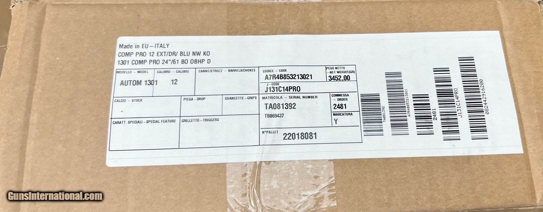 Description: MANUFACTURER: Beretta FAMILY: 1301 Series MODEL: 1301 Comp Pro TYPE: Shotgun ACTION: Semi-Auto CALIBER/GAUGE: 12 Gauge FINISH: Blue Anodized FINISH TYPE: Other Finish STOCK: Synthetic Stock STOCK/GRIPS: Black Synthetic BARREL: 24" CAPACITY: 5 + 1 Listed Capacity Based On Manufacturer Specifications SIGHTS: Fiber Optic Front w/Mid-bead SIGHT TYPE: Fixed Sights WEIGHT: 7.2 lbs. SHIPPING WEIGHT: 15 lbs. SAFETY FEATURES: Reversible Safety CHAMBER: 3" CHOKE: OptimaChoke HP Black Edition ADDL INFO: Oversized 3.5" Stock ADDL INFO: Enlarged Loading Gate ADDL INFO: Enhanced Cartridge Lifter MFG MODEL NO: J131C14PRO SOLD Shotgun Gauge: 12 Gauge Manufacturer: Beretta Model: 1301 Comp Pro Barrel Length: 24" Barrel Condition: BRAND NEW |