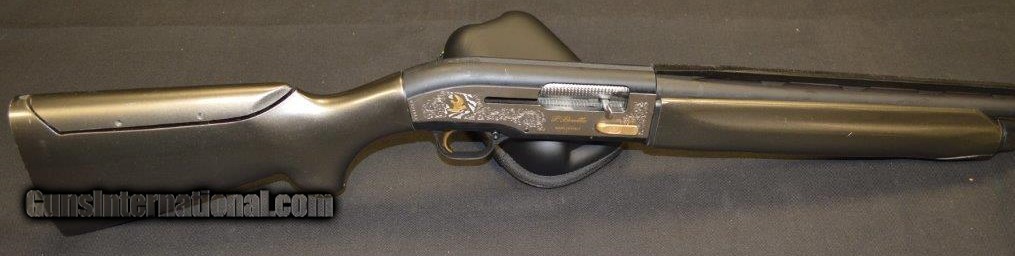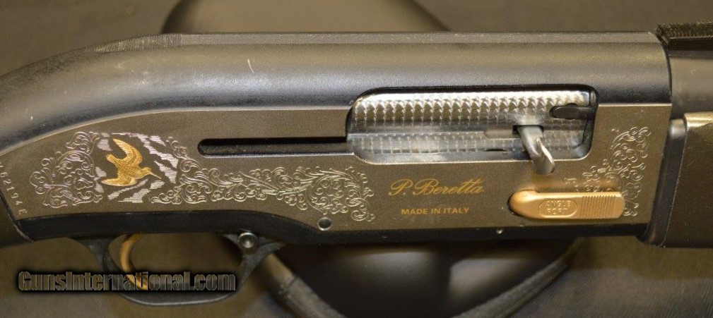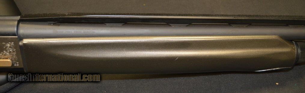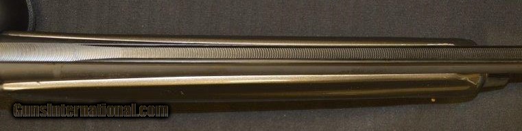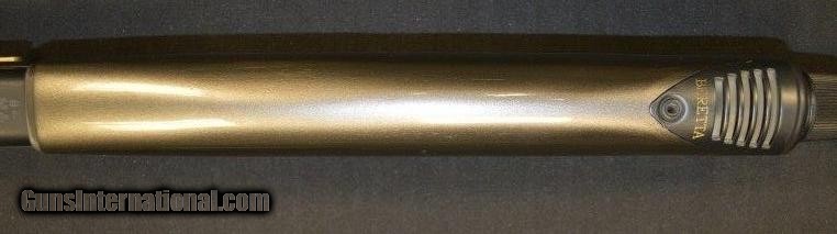 Description: This is a Beretta 390 Gold Sporting shotgun with a 30" ported barrel and several Beretta Optima chokes. The length of pull is 13-1/2" without a recoil pad and it has no gold wear on the trigger. You can add whatever sort of recoil treatment you like to make your length. It has an adjustable comb and the drop at the comb is 1-1/2" and the drop at the heel is 2-3/8". The gun is chambered for 3" shells, but of course it will shoot the lightest load as well without doing anything differently. The magazine holds three shells for a total of 4; without the plug. The bore is bright and shiny and the gun weighs 7 lbs 5 oz. It has been painted a gun metal silver/gray with automotive paint for the racing affect. These are fantastic guns for all types of shooting. SOLD |