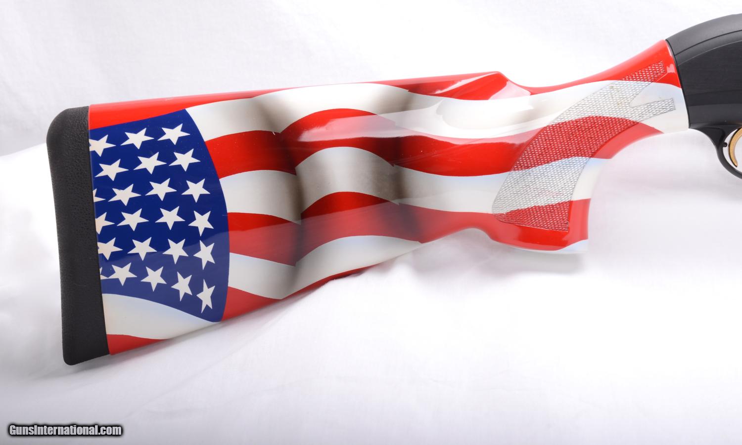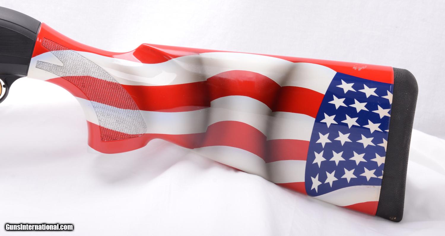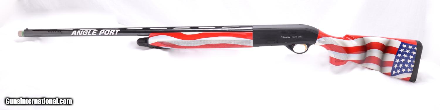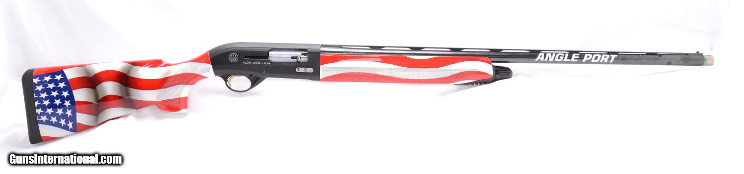 Description: Beretta 391AL Sporting 12 gauge semi-auto shotgun completely “tricked-out” by Angle Port/Ballistic Specialties. I has a 30” barrel with the Optima (.733”) bore that has had the forcing cone lengthened to 3 ½”, ported for recoil reduction and it has four Optima tubes. The trigger has been totally reworked to make it smoother, lighter pull and faster hammer fall. Angle Port extended slide release and Angle Port mag cap along with the American Flag custom paint scheme on the stock and forearm. Note the crack on the forearm has been stabilized but the paint has not been touched-up. The gun is in mechanically excellent condition and with the forearm crack I will call the overall condition 95%. This gun was made in 2005 and to have all of this custom work done today, including the Beretta you would spend over $2,000.00. SOLD |