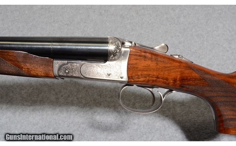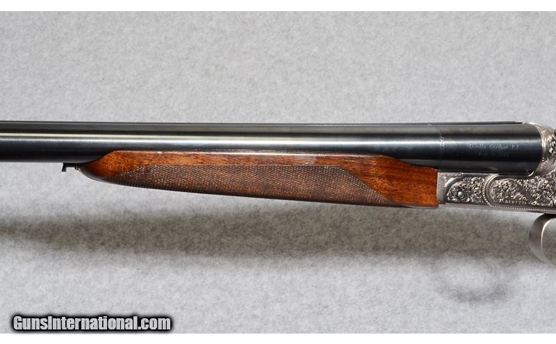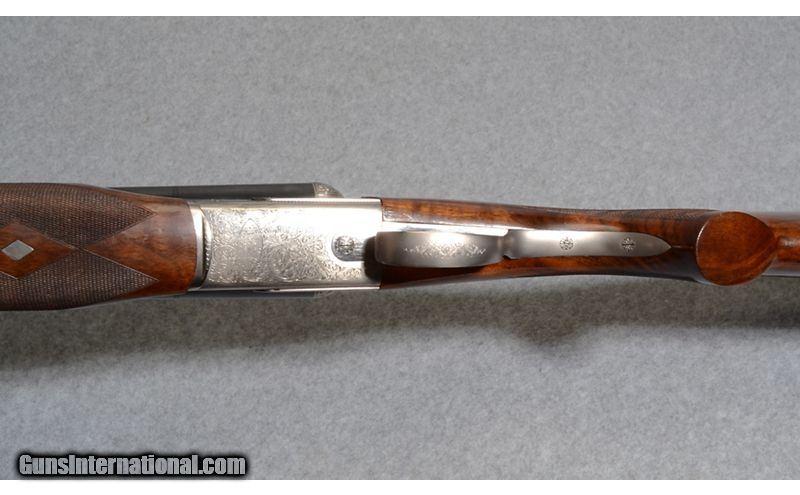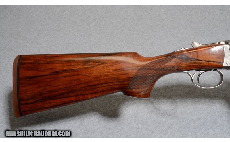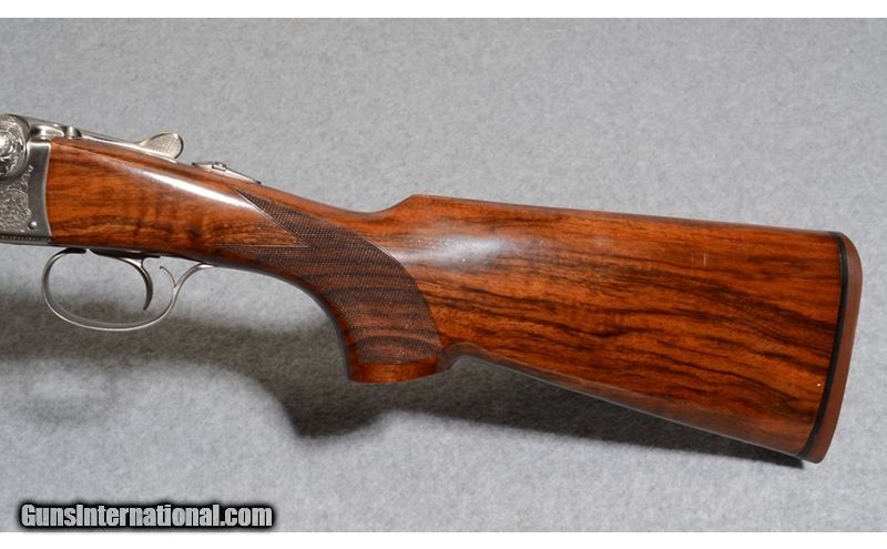 Description: The 470 was released in Europe in 1996 to commemorate the firm's 470th anniversary and made it to the States in 1997. It has since been updated with new features and finish options under the Model 471 designation. The Silver Hawk is a boxlock, in which all the fire-control parts are attached to the action. The receiver is of nickel-chromium-molybdenum steel with an attractive satin-nickel proprietary finish. The receiver's sides have half, false sideplates machined as a part of their contours. Both sides-as well as the underside-feature tasteful, hand-chased scroll engraving. The bolsters, too, have deep scroll engraving, and the nickel trigger guard exhibits modest scroll ornamentation as well. The barrels are cold hammer forged, and the 3-inch chambers are chrome-lined. Beretta's interchangeable Optimachokes came with our sample, and the 2 3/4-inch-long tubes feature an elongated cone for the choke constriction. The exterior bluing of the barrels is smooth and even. 12 Gauge SOLD Chambers: 2 Metal Condition: Excellent Wood Condition: Excellent Bore Condition: Excellent Barrels: 2 Triggers: Factory Trigger Stock Dimensions: 14 3/8" LOP 3/8" cast on 1 1/2" DAC 2 1/4" DAH Fore End: Checkered European Walnut Butt Pad: Factory Butt Pad Weight: 7 LBS 11 OZS Sights: Gold bead Chokes: Comes with a set of five chokes. Item Location: Tulalip, WA |