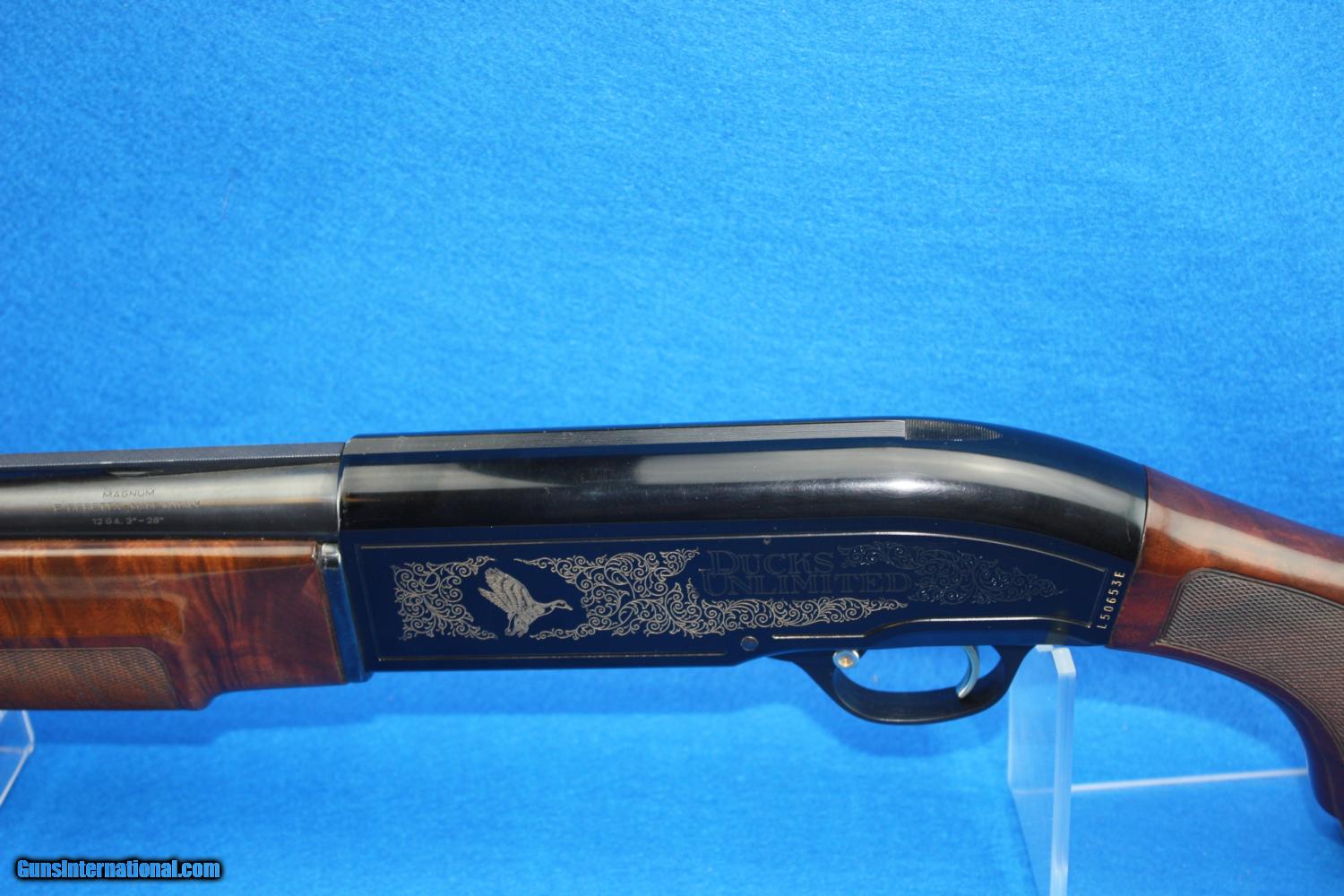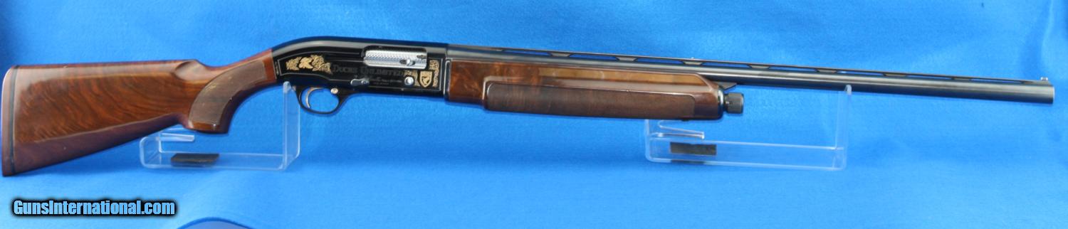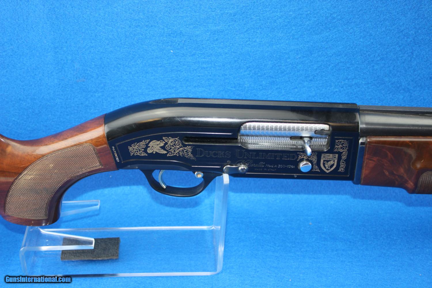 Description: Beretta A-303 Ducks Unlimited, 12 ga., 28"barrel, 3" chamber, ventilated rib, LOP 14", very nicely checkered wood pistol grip stock and forearm, firearm shows very little handling. 1968 production NO BOX ADD 3% FOR CREDIT CARDS SHIPPING $25.00 SOLD |